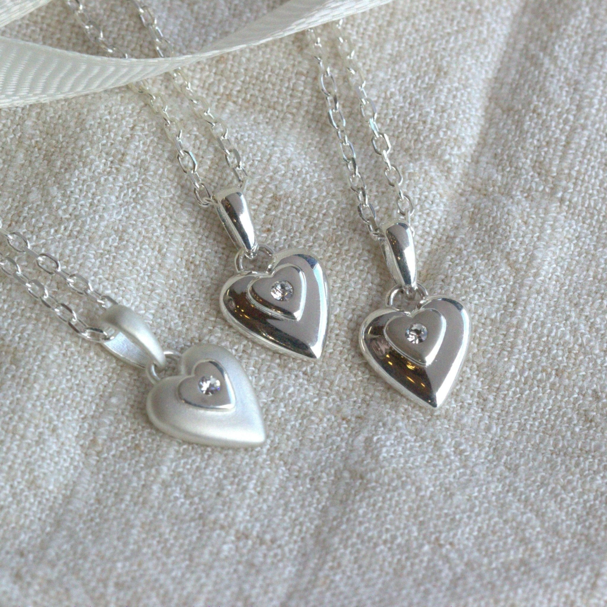 Add timeless elegance to your jewellery collection with our Sterling Silver Crystal Double Heart Necklace. This dainty pendant is available in three different finish variations, and contains a delicate crystal.
