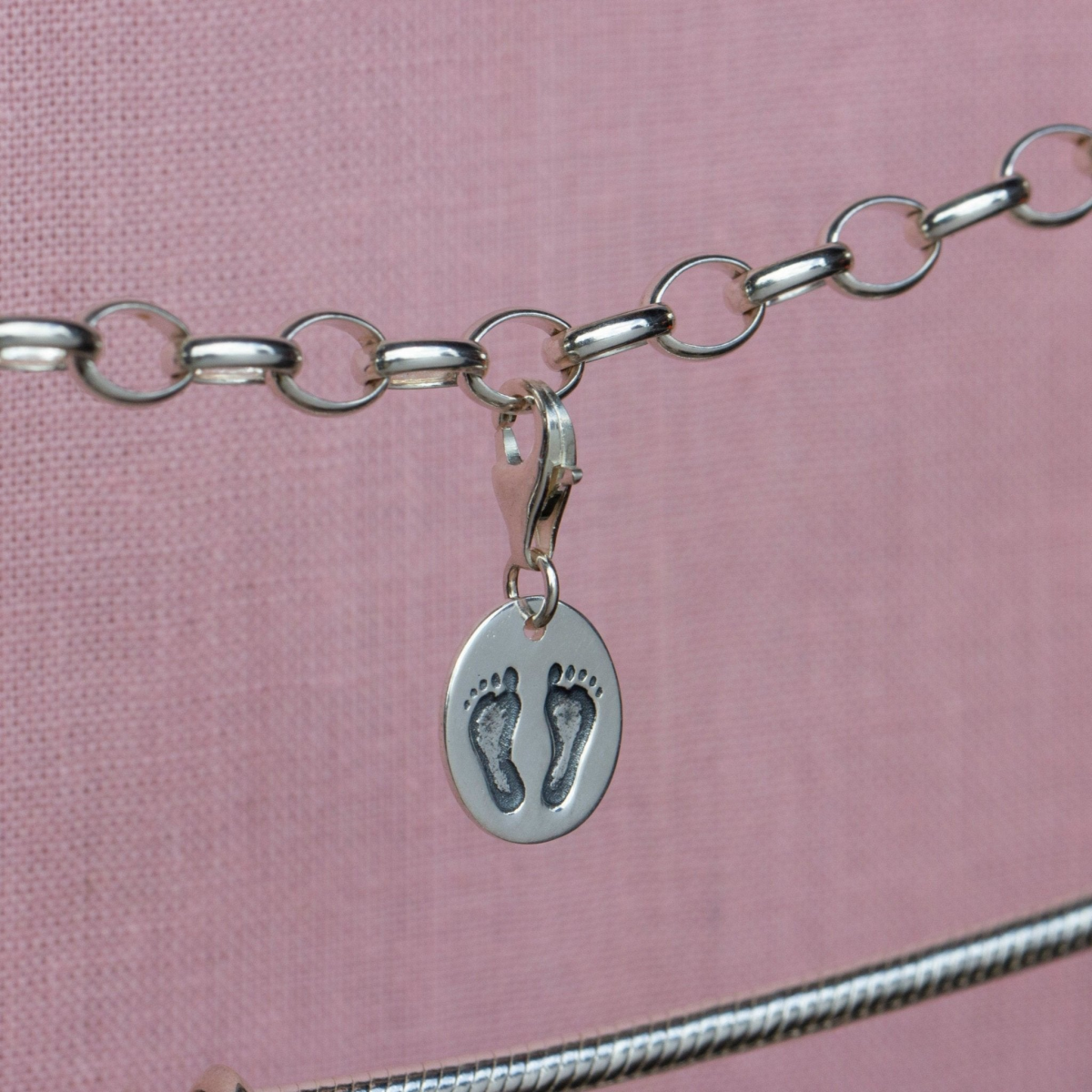 Add a timeless and elegant touch to your jewellery collection with our Footprints Charm, crafted from solid 925 sterling silver. Featuring a beautifully shaped footprints charm.