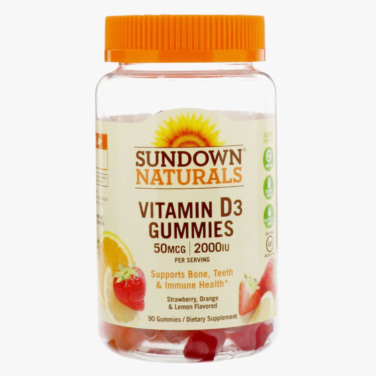 Sundown Naturals, Vitamin D3 Gummies, Strawberry, Orange, & Lemon Flavored, 50 mcg /2,000 IU, 90 Gummies