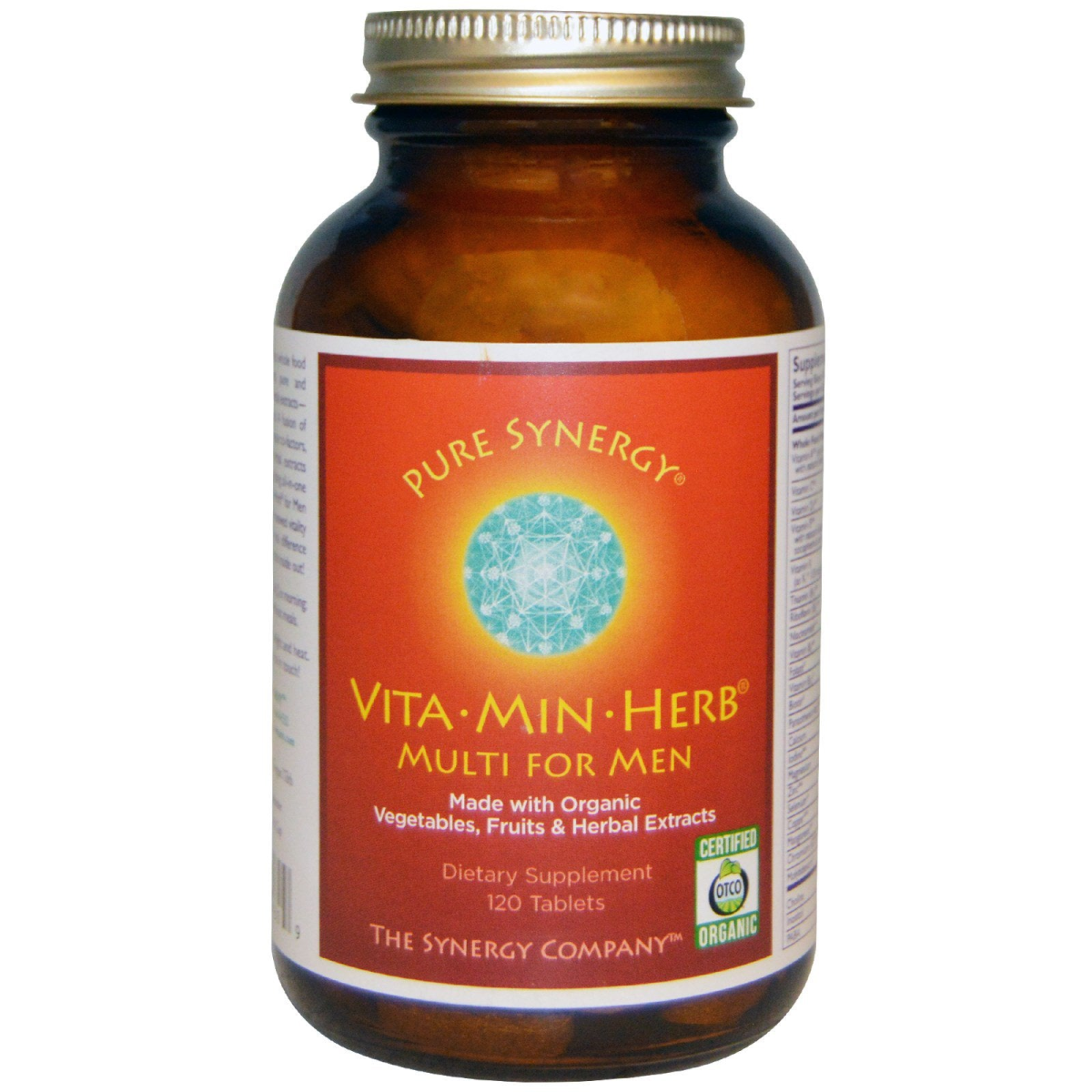 Pure Synergy Made with Organic Vegetables, Fruits & Herbal Extracts Dietary Supplement OTCO - Certified Organic by Oregon Tilth Vita·Min·Herb for Men is the perfect whole food multivitamin, made with organic pure and wholesome vegetables, fruits and herbal extracts—not chemically synthesized in a lab. A fusion of essential vitamins, core minerals, unique co-factors, and ultra potent, SuperPure herbal extracts yields a powerful and deeply revitalizing all-in-one product beyond compare. Vita·Min·Herb for Men offers men of all ages a new level of renewed vitality and foundational health. Feel the real difference and experience true wellness from the inside out!
