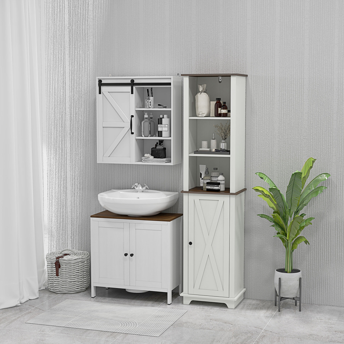 Multi-storage: Slim bathroom cabinet comes with three shelves and a cupboard with door: store towels, products and cleaning supplies.Tall bathroom cabinet design: Slim and narrow, won't take up too much space - great for tighter spots.Adjustable shelves: Set the top shelf and cupboard shelf to a level you want - a more customisable bathroom storage unit.Anti-tipping straps: Attach this bathroom cabinet for safety - suitable for family households.Dimensions: 160H x 39.5W x 30Dcm. Maximum load 50kg. Assembly required.