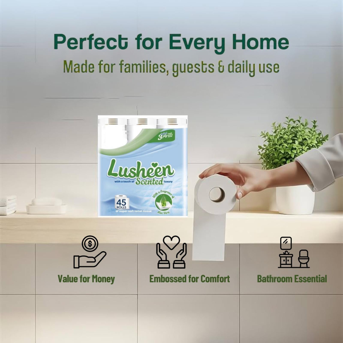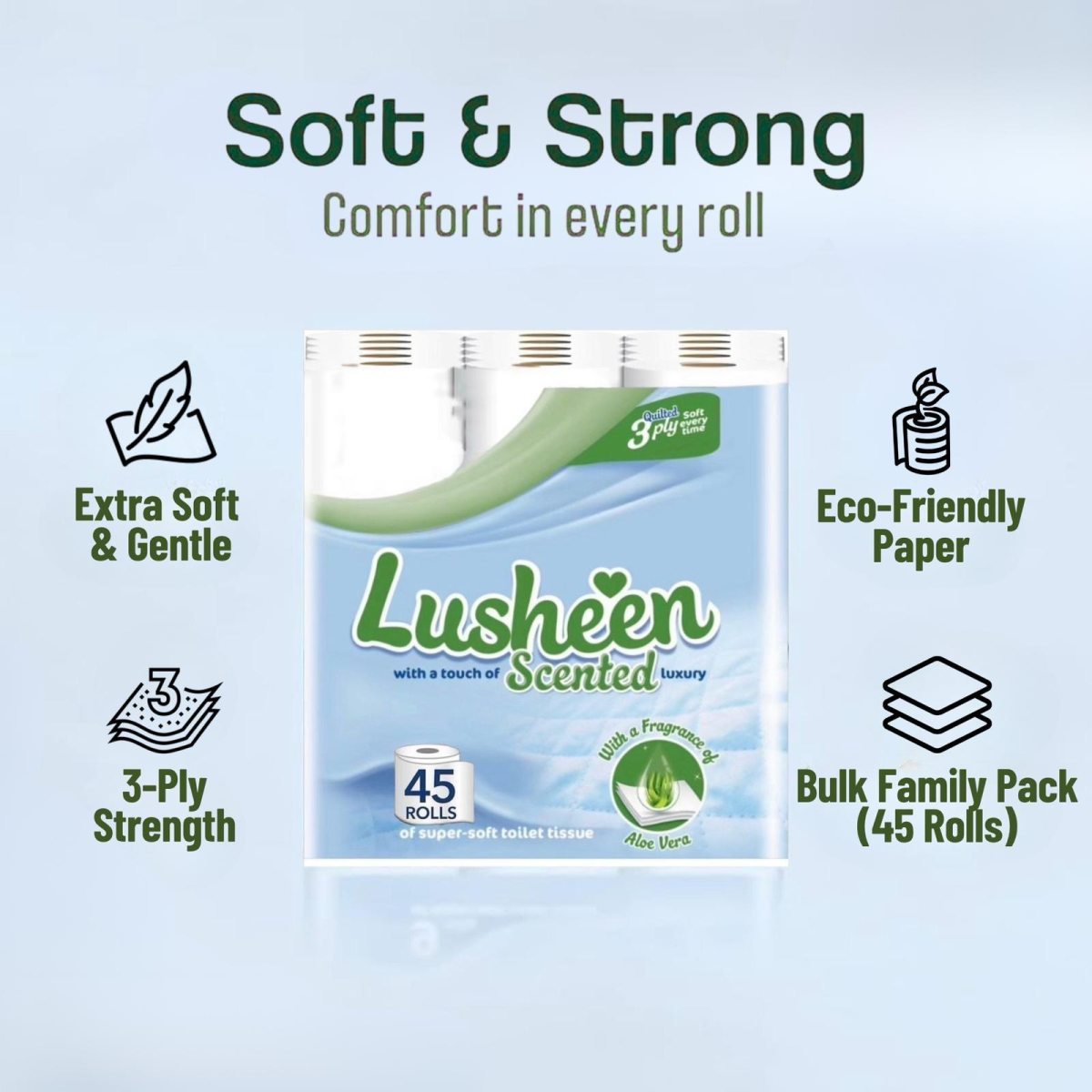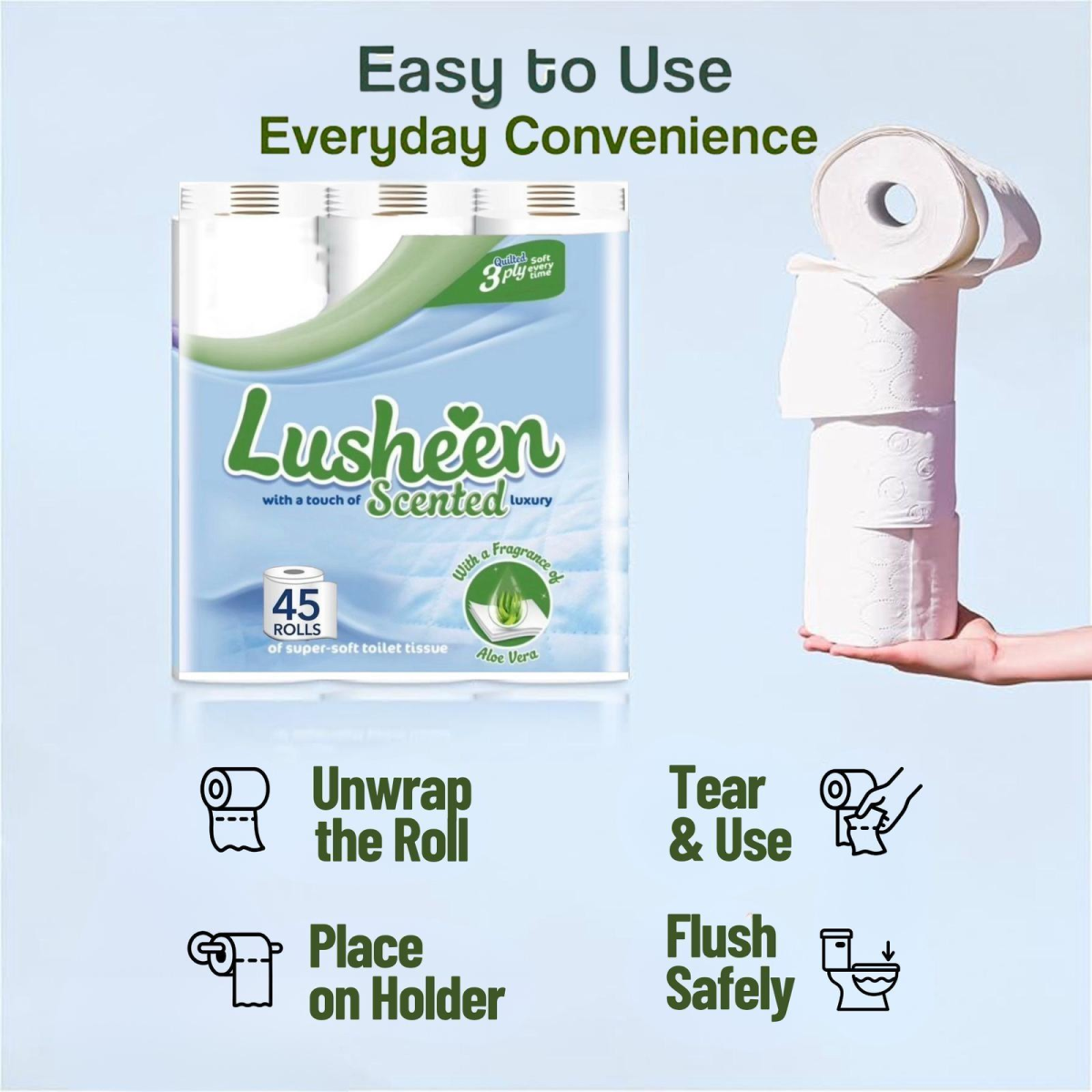 ★EXECUTIVE DESIGN: These quilted soft toilet rolls are designed with a three-ply layer, and Luxury toilet tissue gives a deep quilted softness for a sumptuous clean. Its unique embossed design adds a touch of class to your toilet time too, so you’ll be ba