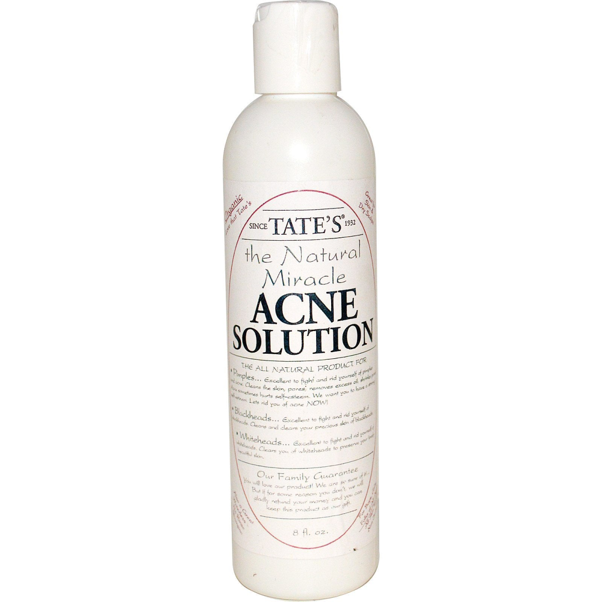 Organic Love that Tate's Since 1932 Great for Skin & Dry Scalps Also a Great Waterless No Rinse Shampoo For Boys, Girls, Folks of All Ages All Skin Types, Non Irritating. The All Natural Product for: Pimples... Excellent to fight and rid yourself of pimples and acne. Cleans the skin, pores, removes excess oil, shrinks pores acne sometimes hurts self-esteem. We want you to have a strong self-esteem. Lets rid you of acne now! Blackheads...Excellent to fight and rid yourself of blackheads. Cleans and clears your precious skin of blackheads. Whiteheads...Excellent to fight and rid yourself of whiteheads. Cleans you of whiteheads to preserve your lovely beautiful skin. Here are some other favorite uses for Tate's the Natural Miracle Acne Solution Pimples Blackheads Whiteheads Acne Scars Balance Skintone Age Spots Antiseptic Dandruff Scalp Soars Disinfect anything Razor bumps Make-up remover Remove dead skin cells No rinse shampoo Scar fade away Promote hair growth Skin cleanser Scalp massage After shave For cuts & scratches Skin cooler