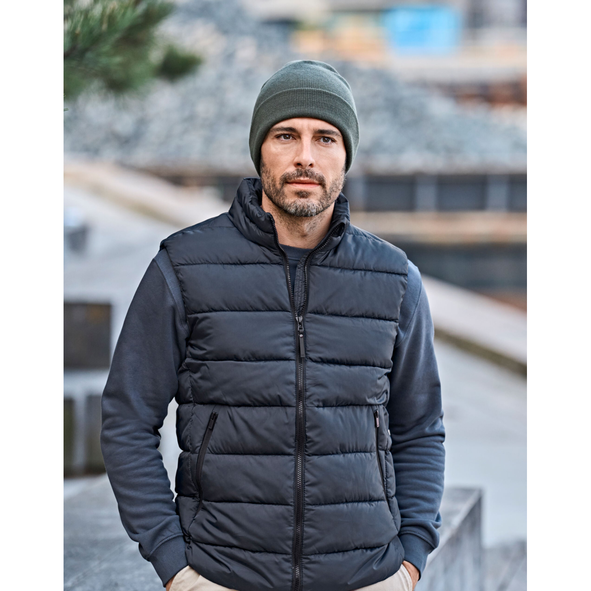 This lightweight padded bodywarmer is made of recycled polyester and insulated with premium DuPont™ padding. The matte textured 1x1 ripstop fabric and clean Scandinavian design give it a modern silhouette. It features a quality SBS zipper, an inner pocket, and two large front pockets.