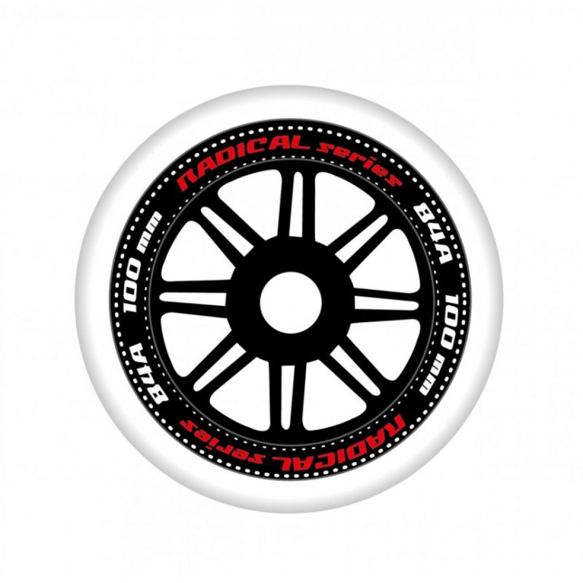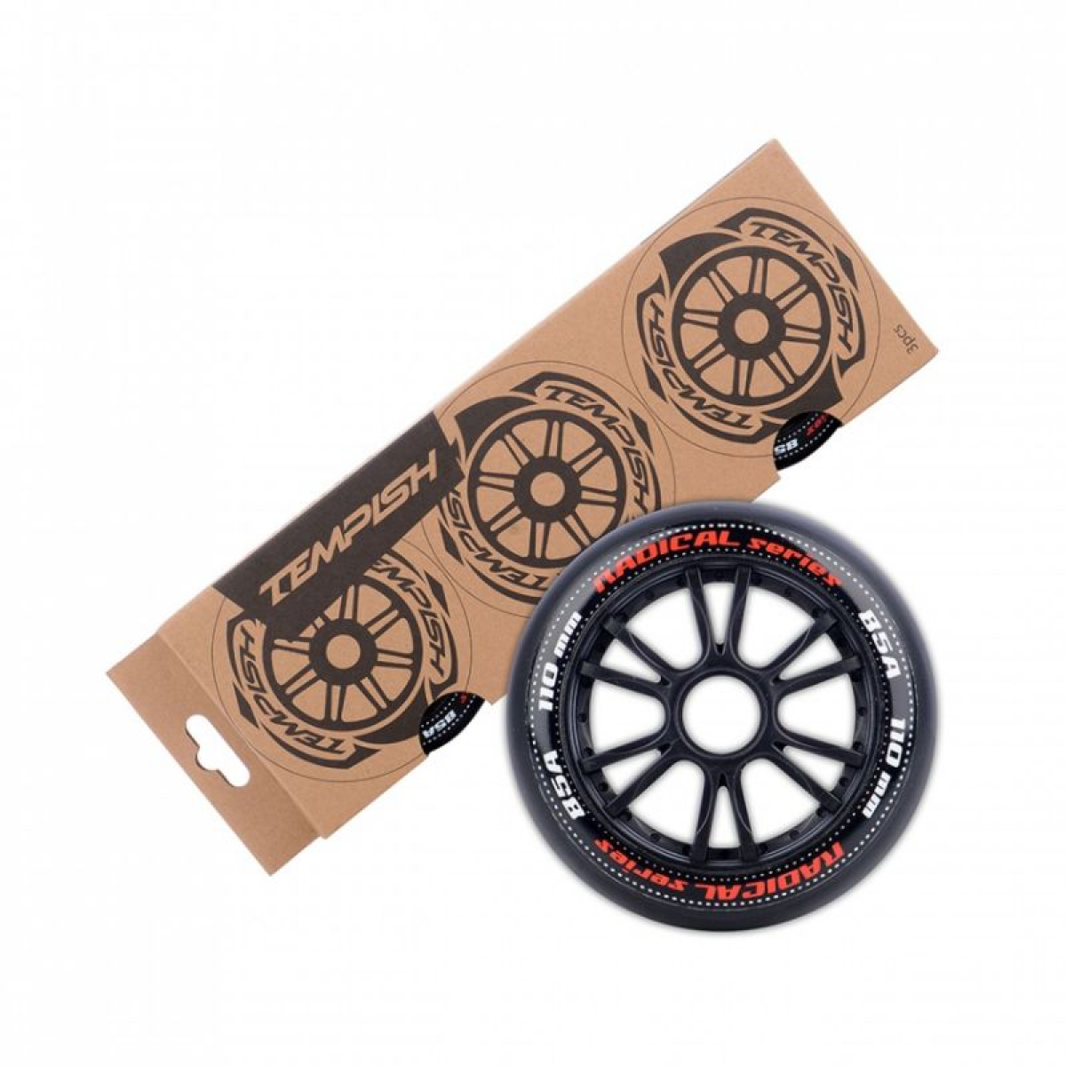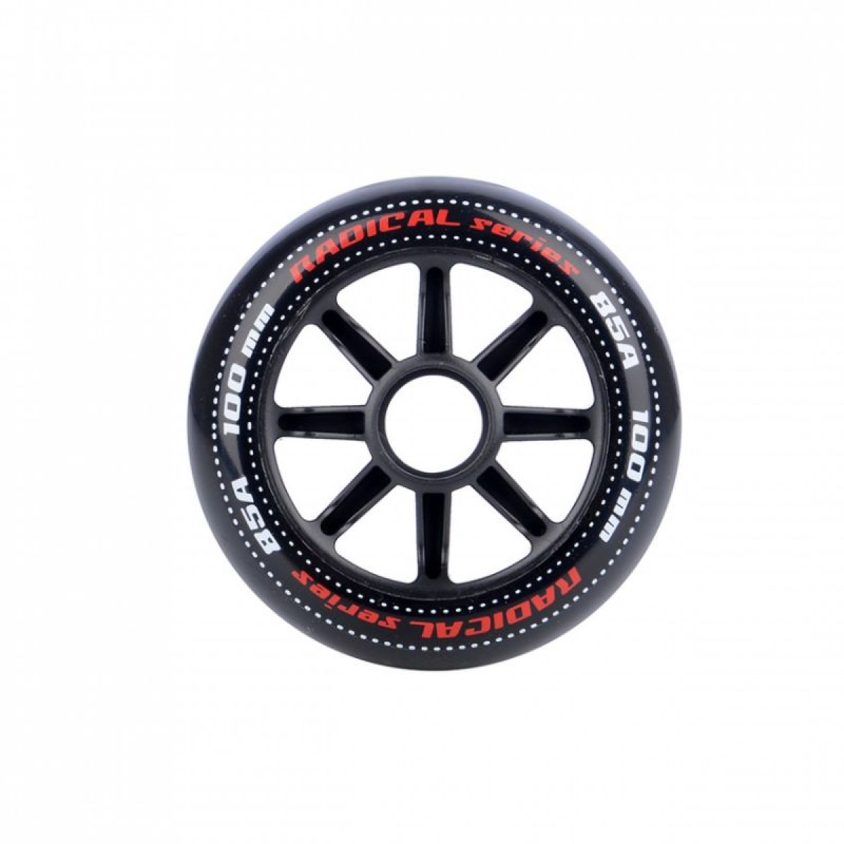TEMPISH Radical PU 86A wheels. These wheels are designed for recreational, sports, and racing skating. Their 86A hardness makes them fast, with low rolling resistance and extended lifespan, ensuring comfortable riding. The RADICAL series is designed for all types of asphalt and concrete surfaces; the material used is highly resistant to even the most inferior surfaces. TECHNICAL PARAMETERS: Intended Use: Recreational, sports, and racing skating. Size: 100 mm. Hardness: 86A. Bearings: None. Quantity: 3.