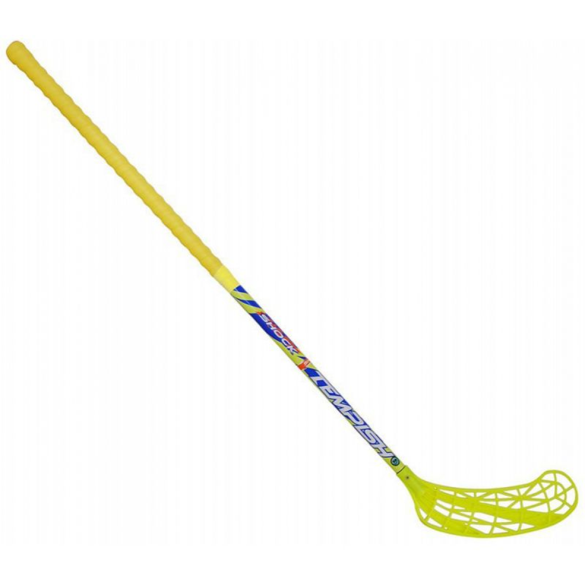 This officially IFF-certified floorball stick is ideal for less experienced players, recreational players, and beginners. It is made of fiberglass, composed of several layers precisely geometrically matched to achieve ideal properties in terms of flexibility and durability. The stick demonstrates excellent properties for both shooting and technical play. The shaft profile is classic, rounded, tapering towards the blade. The grip is standard Score, which fits perfectly in the hand. The stick is equipped with a SHOCK blade, which is slightly curved. This floorball stick can be used primarily for technical play, making it easy to shoot and pass. Optimal sports load level: 3 Stick length: 100 cm Player height: 175 cm and above Stick length: 100 cm Blade material: PA Blade bend: left, right Stick material: fiberglass Stick hardness: 28 Shape: conical - ellipse Certificate: yes Weight: 95 / 280g, 100 / 290g