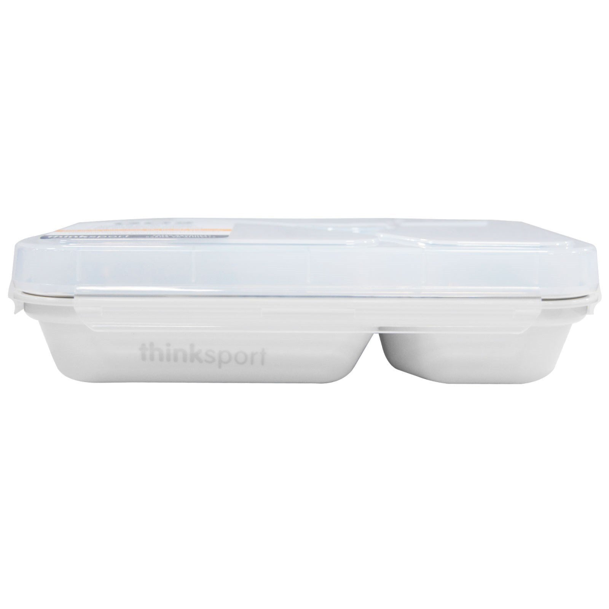 Perfect On-The-Go Container Airtight Lid for Easy Transport Each Compartment Watertight Fork and Spoon Set Included Easy-To-Clean (Dishwasher Safe) Safer Products For Healthier Babies to Athletes Patent Pending Free of: BPA, PVC, lead, PS, PA, PET, BPS, phthalates, nitrosamine, and harmful chemicals. Created to address the growing concern of harmful chemicals leaching from consumer products. After many years of designing and prototypes, we are excited to announce the launch of the GO2 container. Unlike many other lunch style boxes, the GO2 container seals off each compartment. You can literally fill each compartment with different colored water, shake it and not have the colors mix. This was no easy feat. But nobody likes having their sandwich soggy because some sort of sauce or juice flowed into that compartment. There are also a few lunch containers that have lids for each compartment. This creates a lot of cleaning and high probability that lids end up getting lost. The GO2 container features an embedded silicone matrix to seal off each area completely. And finally, we built in our very stylish, ergonomic fork and spoon so that it easily fits into its own compartment. No more forks and spoons getting lost. And its just utterly convenient to have a place to store them so that they are not loose during travel. GO2 Container comes in Blue, Orange, White and Pink! Fork and spoon secured. No losing utensils. Large compartments make it easy to place food for lighter to heavy fare. Just fill…and GO! Modern and highly functional. From the moment that you hold the GO2 container, you will understand that it is a very sturdy, well-designed product. No skid design, because nobody wants their meatballs on the floor. As with all Thinkbaby and Thinksport products, we apply our strict material standards to everything that we do. So no, phthalates, BPA, BPS, PET, lead, melamine, nitrosamines or biologically harmful chemicals. Materials: 304 Stainless steel (18/8) for both inner plate and fork and spoon Polypropylene for outer casing of GO2, GO2 Lid, and Fork/Spoon handle Silicone rings built into the lid to seal the compartments GO2 container is ideal for school, work, travel, camping or around the house. Size: GO2 Container 9.5 inches wide 2.5 inches high 6 inches long Fork and spoon - 6.5 inches
