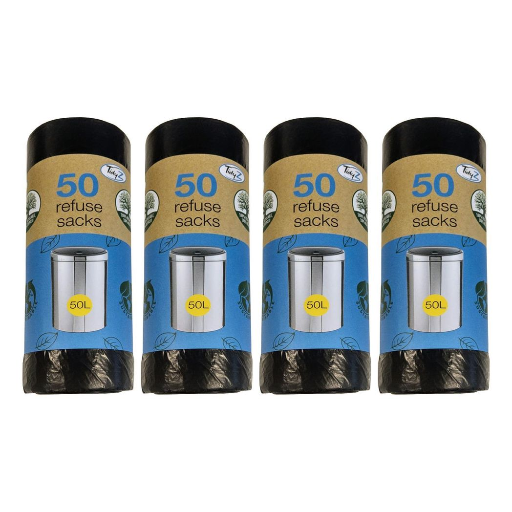 Tidyz Drawstring Refuse Sacks Bin Bags, Black,50L(Select Your Pack)