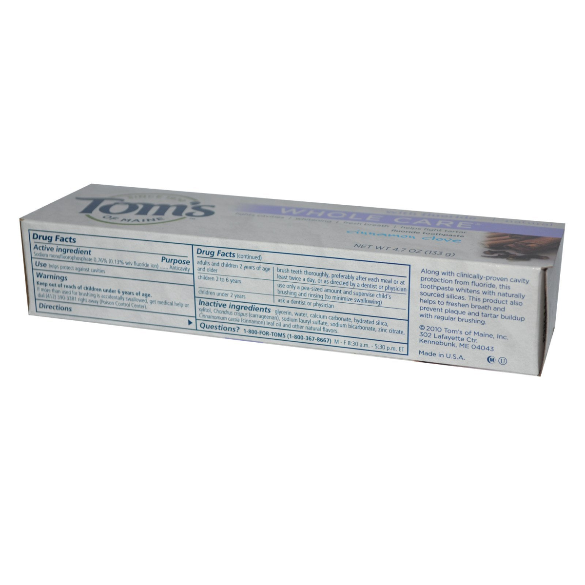 Tom's of Maine, Whole Care Fluoride Toothpaste, Cinnamon Clove, 4.7 oz (133 g)