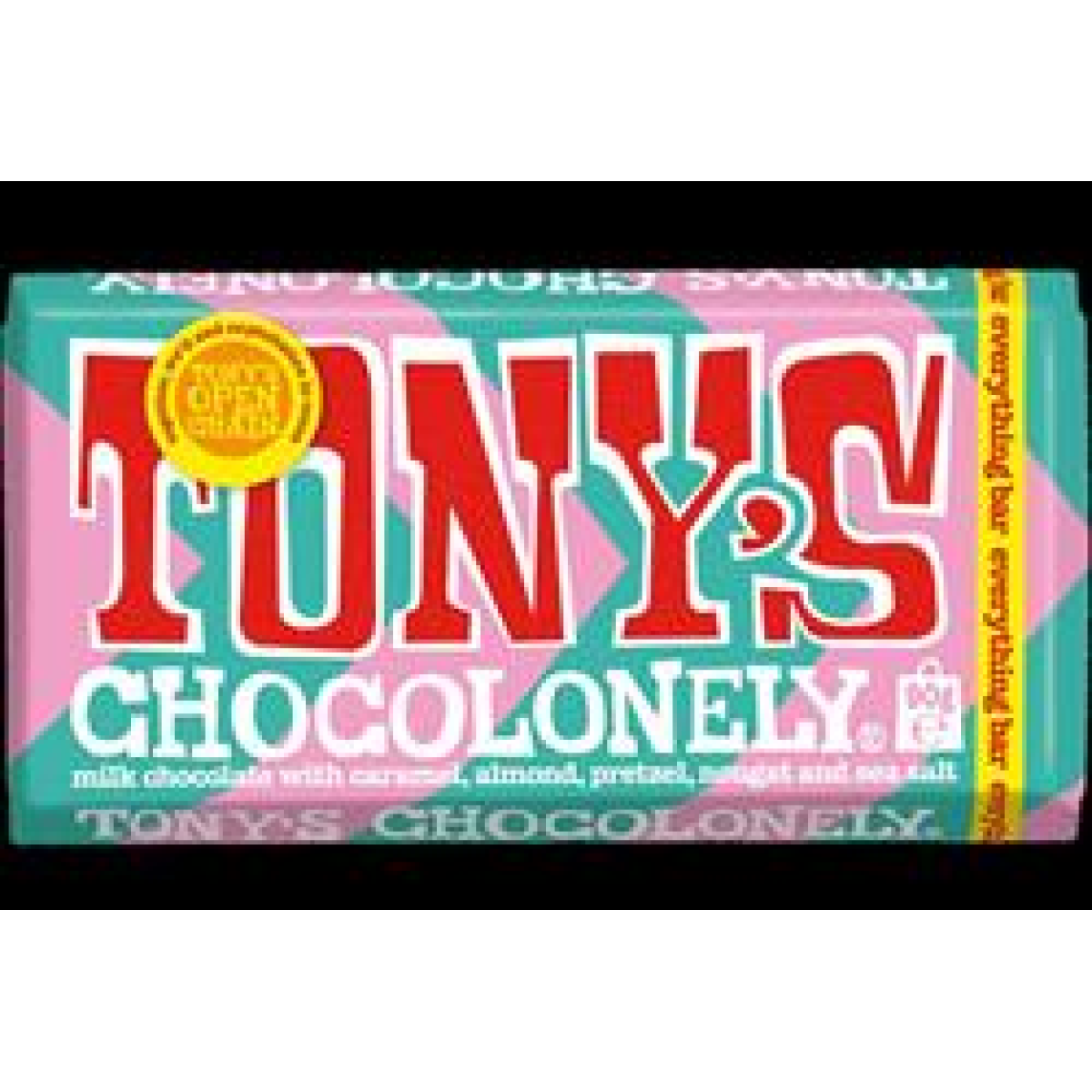 Tony's Chocolonely Milk chocolate caramel pretzel almond nougat sea salt 90g e Fairtrade UK
