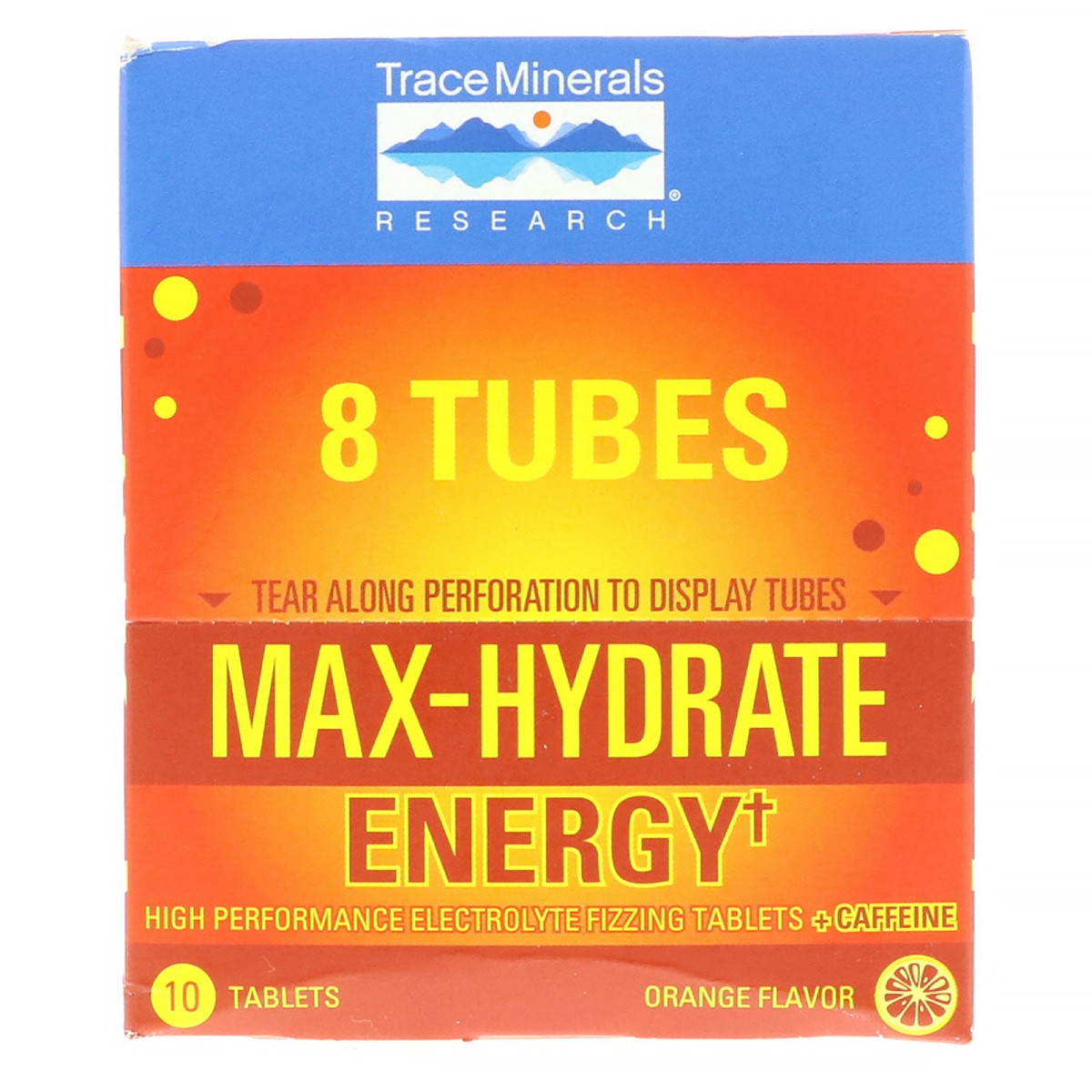 Trace Minerals Research, Max-Hydrate Energy, Effervescent Tablets + Caffeine, Orange Flavor, 8 Tubes, 10 Tablets Each