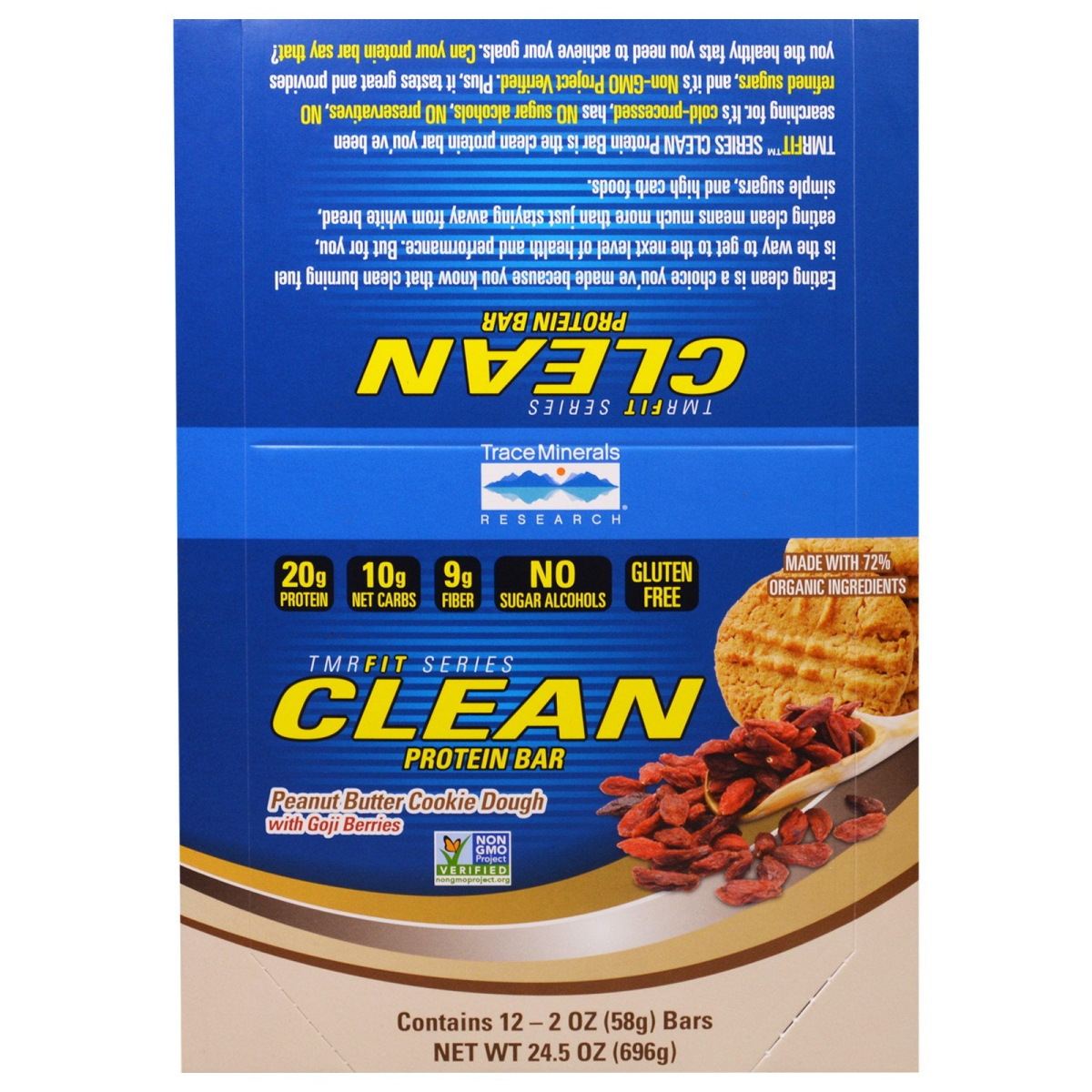 Trace Minerals Research, TRMFit Series Clean Protein Bar, Peanut Butter Cookie Dough with Goji Berries, 12 Bars, 2 oz (58 g) Each