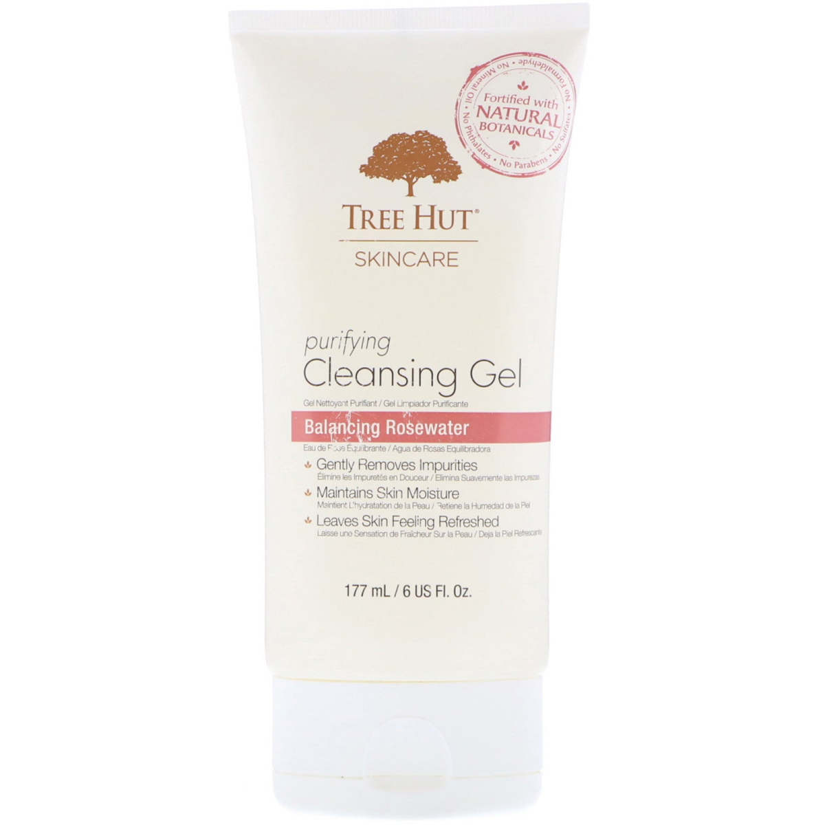 Fortified with Natural Botanicals No Mineral Oil No Phthalates No Parabens No Sulfates No Formaldehyde Gently Removes Impurities Maintains Skin Moisture Leaves Skin Feeling Refreshed Made in USA Gives your face a fresh start with Tree Hut Purifying Cleansing Gel. Made with non-drying ingredients and rosewater, this gel helps to balance skin for a naturally beautiful glow.