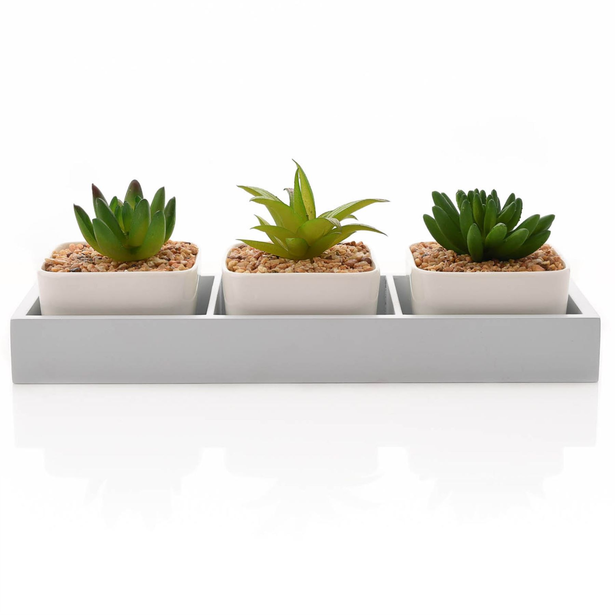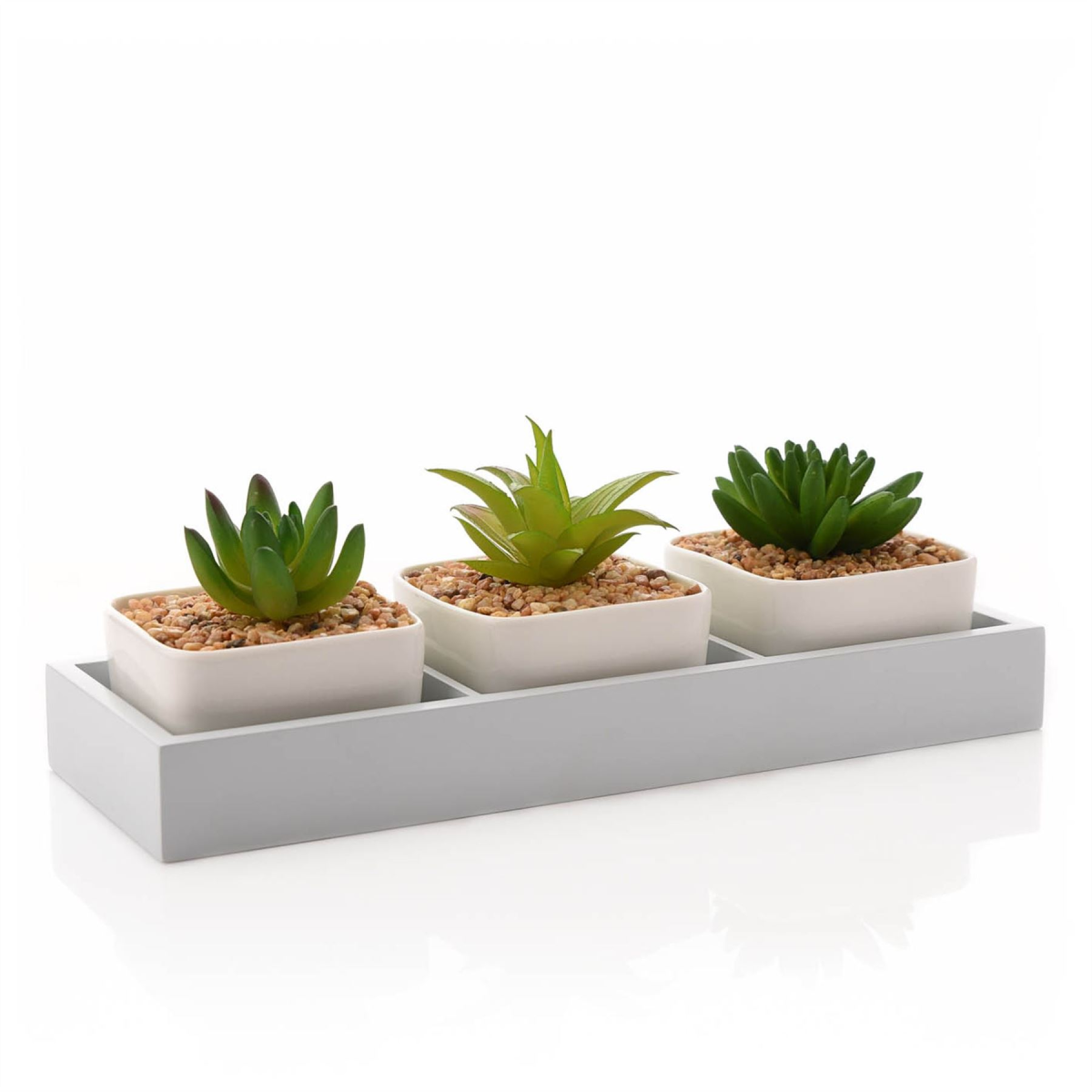 This set of three succulents plants would look stylish in any living space. Whether on a desk, on a mantel or on a bookshelf, these cute and trendy planters are certain to brighten up any room.