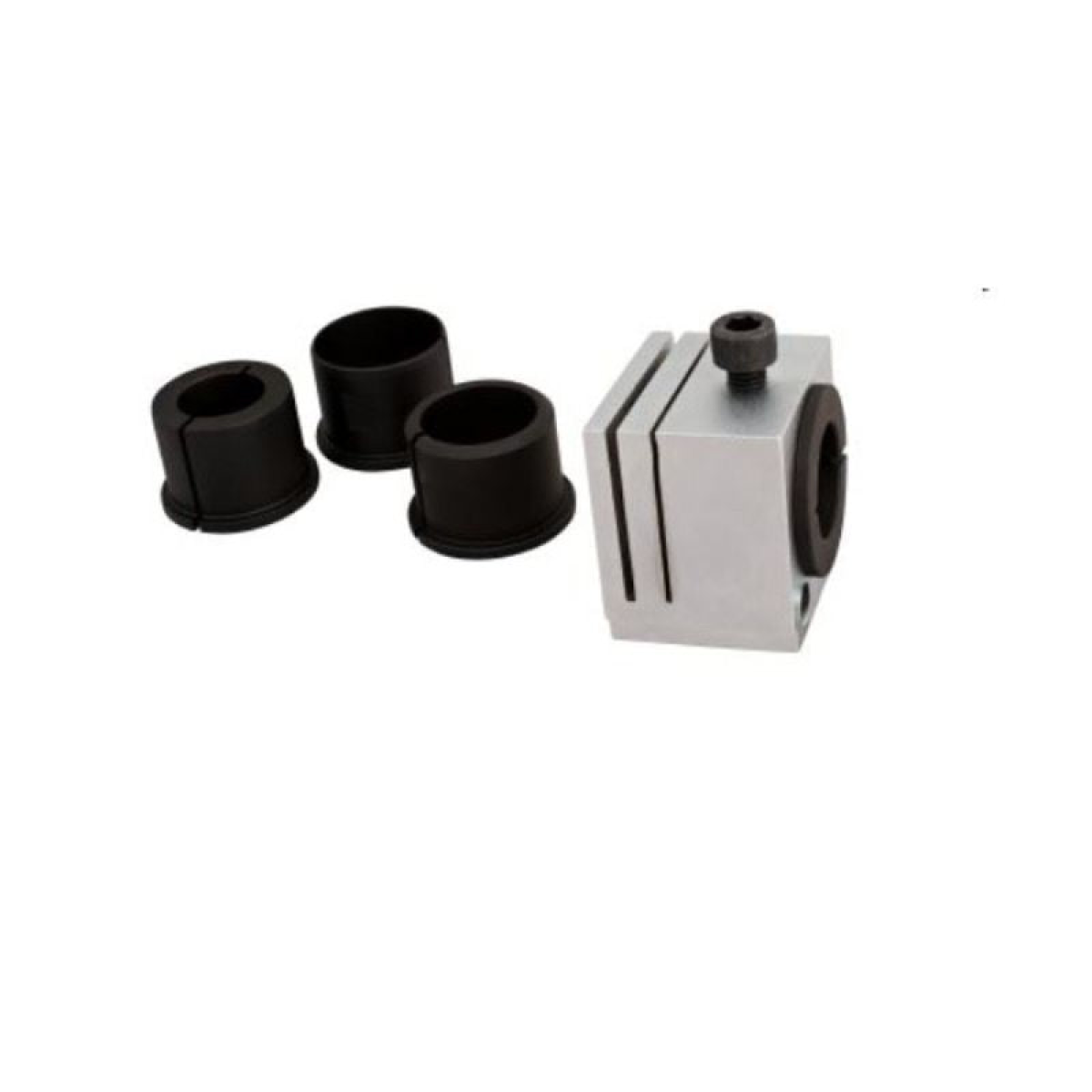 If the steerer tube of a new fork is too long, it must be shortened to the required length. The cutting jig allows for precise cutting of tubes with diameters of 1", 1.5", 1.5/8", and 1.5/2". Clamp the fork in the jig, lightly tighten the mounting screw, and place the assembly in a vise mounted on a workbench. Cut the tube with a saw (UNIOR item 750) inserted into the jig's slot. The jig's gripping element is very precisely made, prevents any burrs on the tube surface and ensures a perpendicular cut.