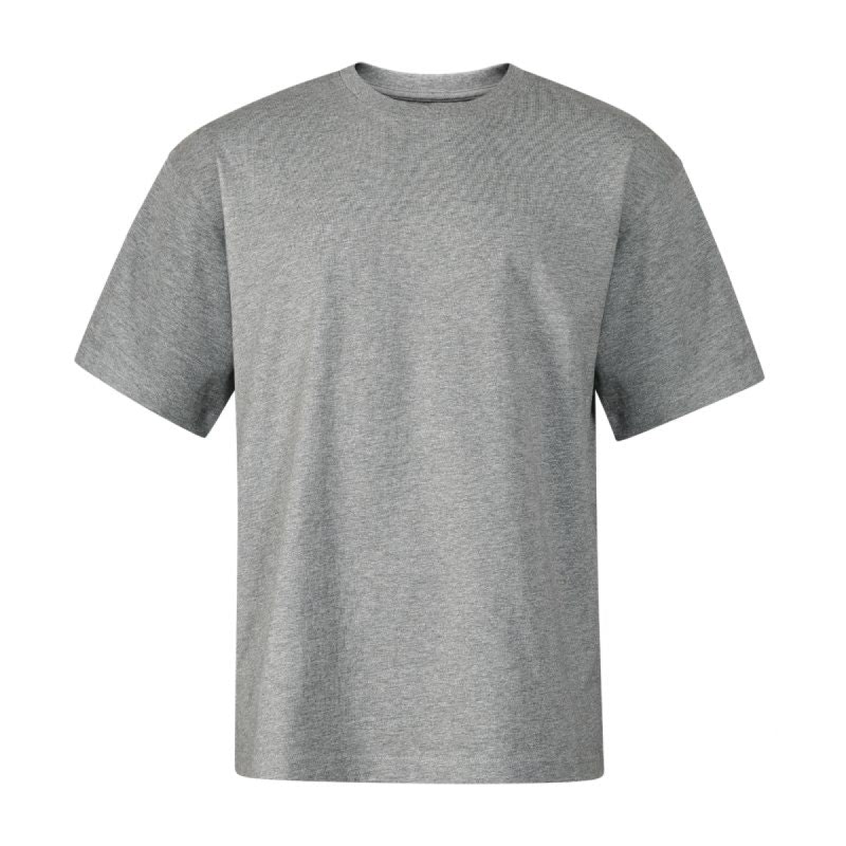 Single Jersey, 100% cotton (composition may vary - color 12 - 85% cotton, 15% viscose), enzymatic treatment without label - ready for rebranding, loose cut with side seams, label on the back hem in a neutral size, neckline finished with 1:1 rib knit with 5% elastane, neckline reinforced with tape from the outer material, reinforcing seam on the shoulders, extended shoulder line, Enzymatic treatment