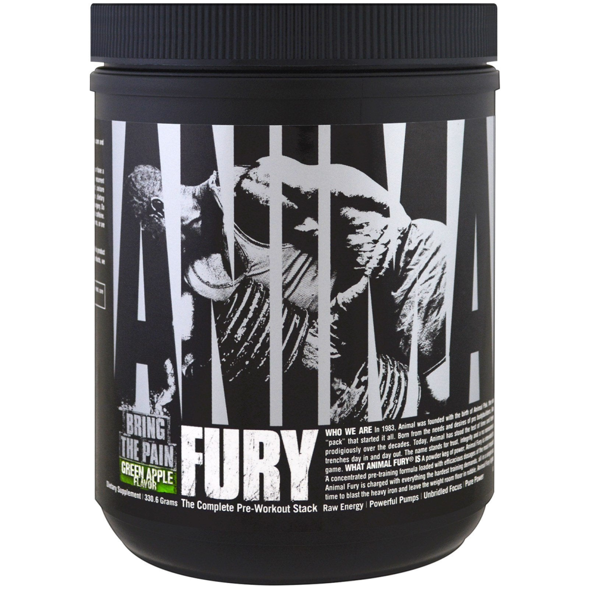 Bring the Pain Dietary Supplement Raw Energy | Powerful Pumps | Unbridled Focus | Pure Power CarnoSyn Who we are: In 1983, Animal was founded with the birth of Animal Pak, the venerable training "pack" that started it all. Born from the needs and desires of pro bodybuilders. Animal has grown prodigiously over the decades. Today, Animal has stood the test of time and been proven in the trenches day in and day out. The name stands for trust, integrity and a no nonsense approach to the game. What Animal Fury is A Powder keg of power, Animal Fury is intended to bring the pain. A concentrated pre-training formula loaded with efficacious dosages of the most impactful ingredients. Animal Fury is charged with everything the hardest training demands, all in a single scoop. When it is time to blast the heavy iron and leave the weight room floor in rubble. Animal Fury lights the fuse.