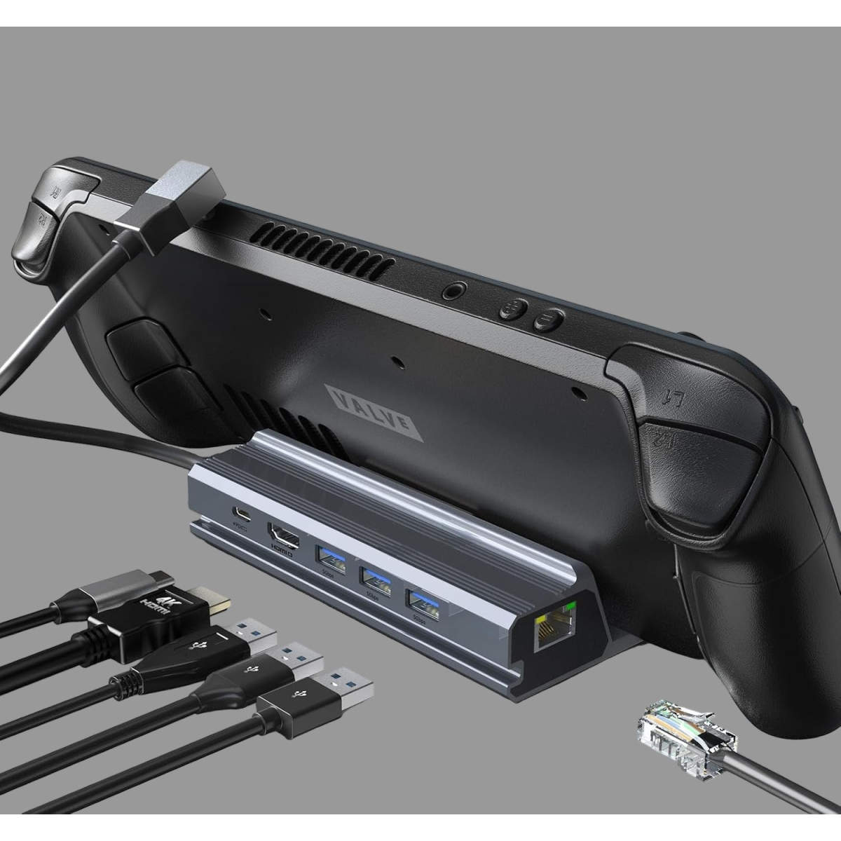 • Multifunctional 6-in-1 Docking Station: This docking station developed for Steam Deck is multifunctional and features Gigabit Ethernet, 4K HDMI 2.0 output, USB Type-C PD fast charging port and 3 x USB 3.0 5Gbps data ports. It easily connects to USB-C hubs for a comprehensive connectivity solution.