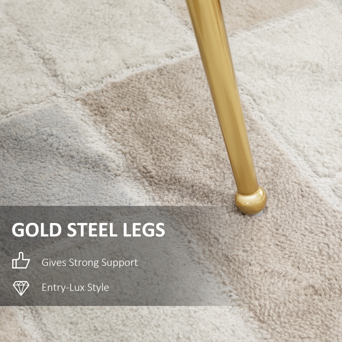 COMFORTABLE: Seat filled with sponge padding to sit for longer periods, high back for support. The shell chair with no arms for plenty of sitting room.LUXE LOOK: Shell-shaped back of the comfy chair is pretty, wrapped in velvet-feel upholstery for plenty of sophistication. Pastel hue is soft for a gentle look.METAL LEGS: A sturdy base to support you properly. Gold-tone finish to complement the rest of the living room chair.BEDROOM CHAIR DIMENSIONS: 88H x 57W x 58Dcm. Seat: 49H x 54W x 49Dcm.MAXIMUM LOAD 120KG. ASSEMBLY REQUIRED.