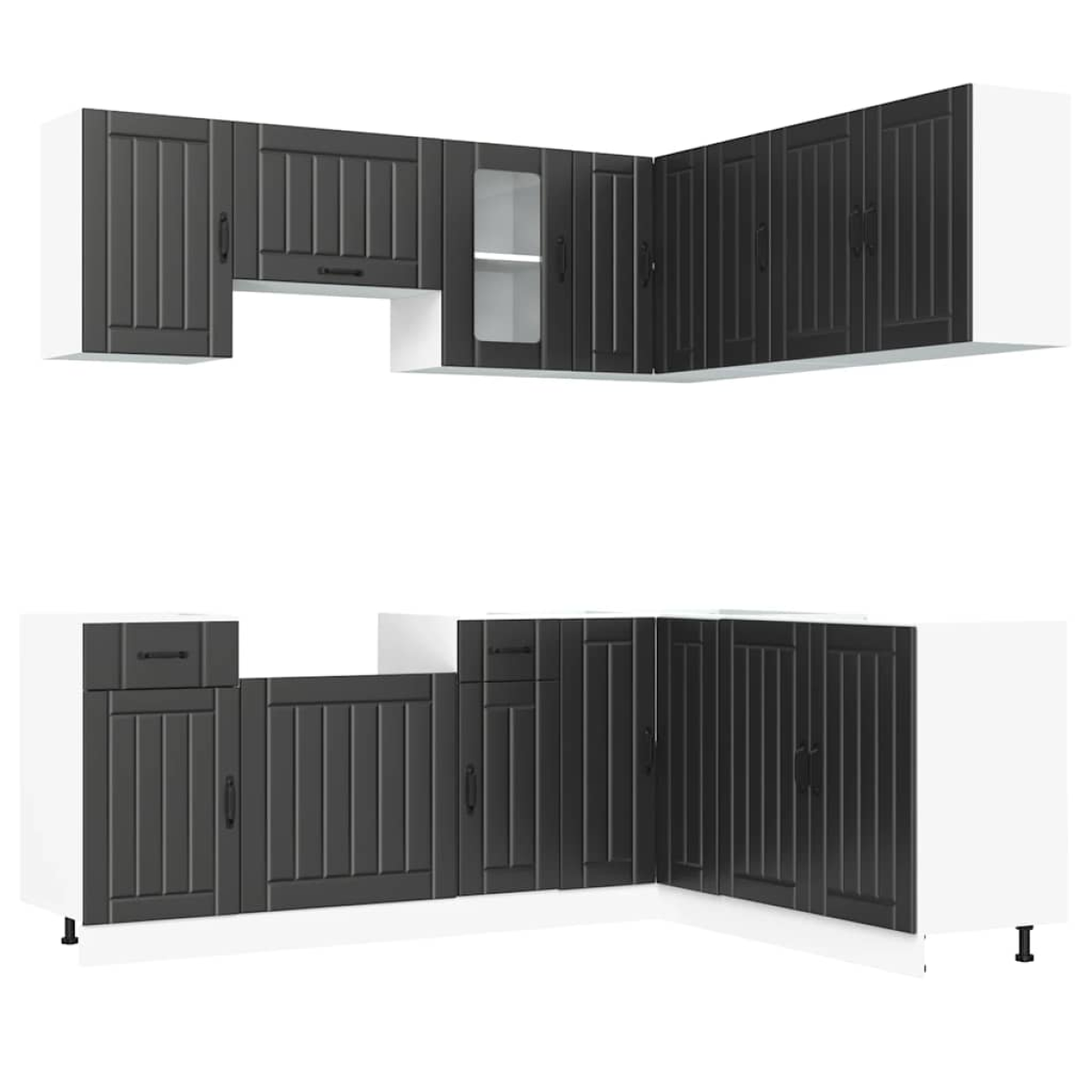 This 11-piece kitchen cabinet set, with its elegant design, optimises your kitchen space and provides ample storage space for your personal belongings! Stable and durable material: Engineered wood is a durable and stable material with a smooth surface that is resistant to moisture, warping, and splitting, making it a reliable choice for a variety of projects.Ample storage space: The kitchen cabinet set has many compartments, and offers sufficient space to store bowls, plates, pots, and other kitchen appliances.Adjustable feet: The bottom cabinets feature adjustable feet that can be adjusted in height to suit your kitchen layout.Easy to maintain: Thanks to its smooth surface, these kitchen cabinets are easy to clean with a damp cloth and require less maintenance. Warning:To prevent it from tipping over, this product must be used with the provided wall attachment device. Good to know:Screw(s) and plug(s) for inside the wall are not included. Seek and use screw(s) and plug(s) suitable for your walls. If you are uncertain, seek professional advice. Read and follow each step of the instruction carefully.The worktop, sink and faucet are not included in the delivery.