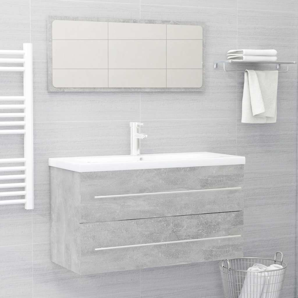 vidaXL 2 Piece Bathroom Furniture Set Concrete Grey Engineered Wood