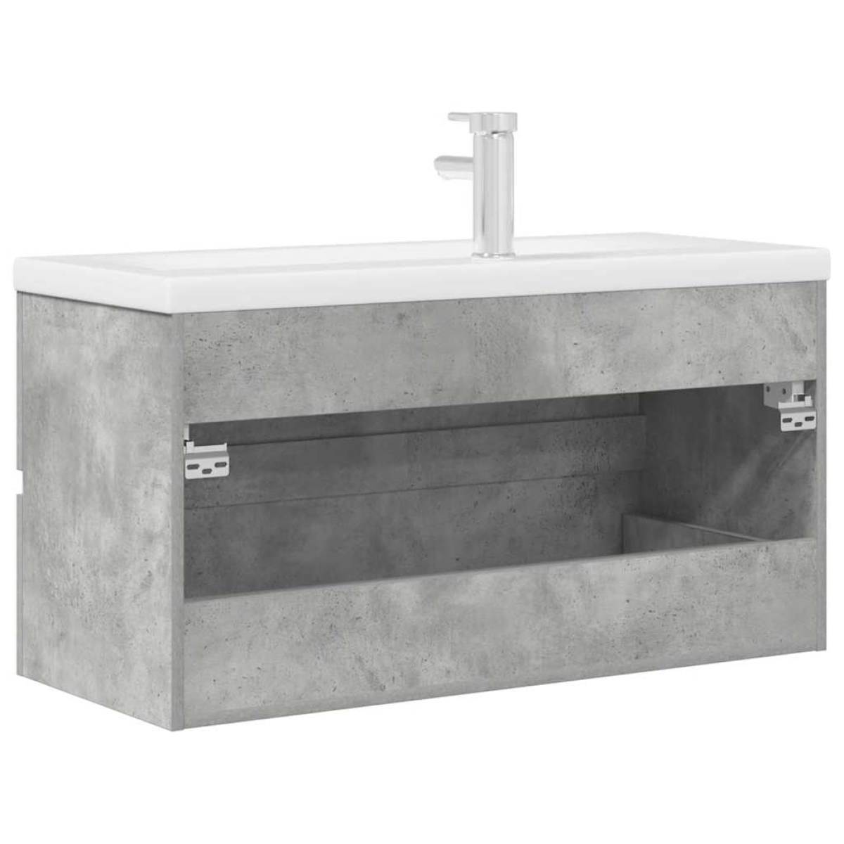 This handy bathroom furniture set, featuring spacious storage space, is an excellent addition to your bathroom, giving it a tidy and striking appearance! Long-lasting material: The engineered wood is of exceptional quality with a smooth surface and also features strength, stability and resistance to moisture.Durable material: The bathroom sink, made of ceramic, has a durable surface that resists impacts, stains, and scratches, ensuring its long-lasting shine.Ample storage space: The bathroom cabinet offers ample storage space to easily accommodate your essential toiletries and bath items such as soaps, shampoo, toothpaste, etc.Wall-mounted function: The bathroom furniture can be wall-mounted to add extra storage space. That way, you can maximise your floor space and keep the area clean. Good to know:Screws and plugs for inside the wall are not included. We advise you to find and use screws and plugs suitable specifically for your walls. If you're not sure, you can consult with a professional. Please read and follow each step of the instructions.