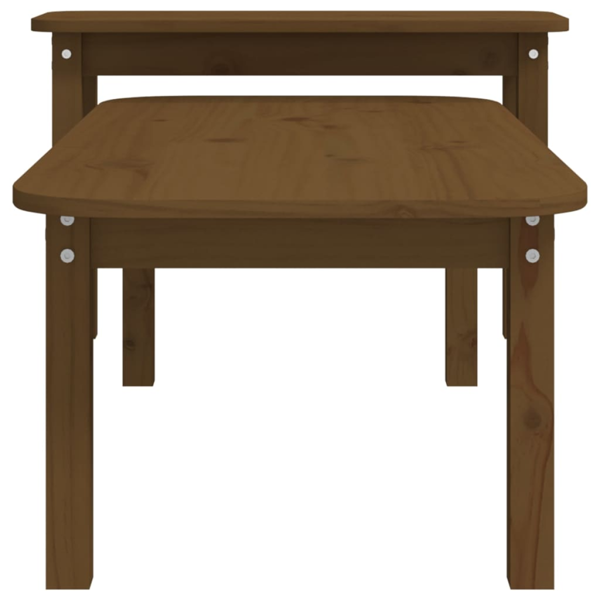 Add a touch of elegance to your living room with this stylish wooden coffee table set. Solid pine wood: Solid pine wood is a beautiful natural material. Pine wood has a straight grain, and the knots give the material its signature, rustic look.Space-saving design: The clever size design allows the lower couch table to be placed under the higher one, which saves space and keeps your home tidy.Sturdy tabletop: The sturdy tabletop is perfect for placing your drinks, food, and other decorative items.Multiple uses: You can use the side table set separately or place them together while making a different combination. The nesting side table will be the ideal decoration solution for any living space. Note:Each product comes with an assembly manual in the box for easy assembly.