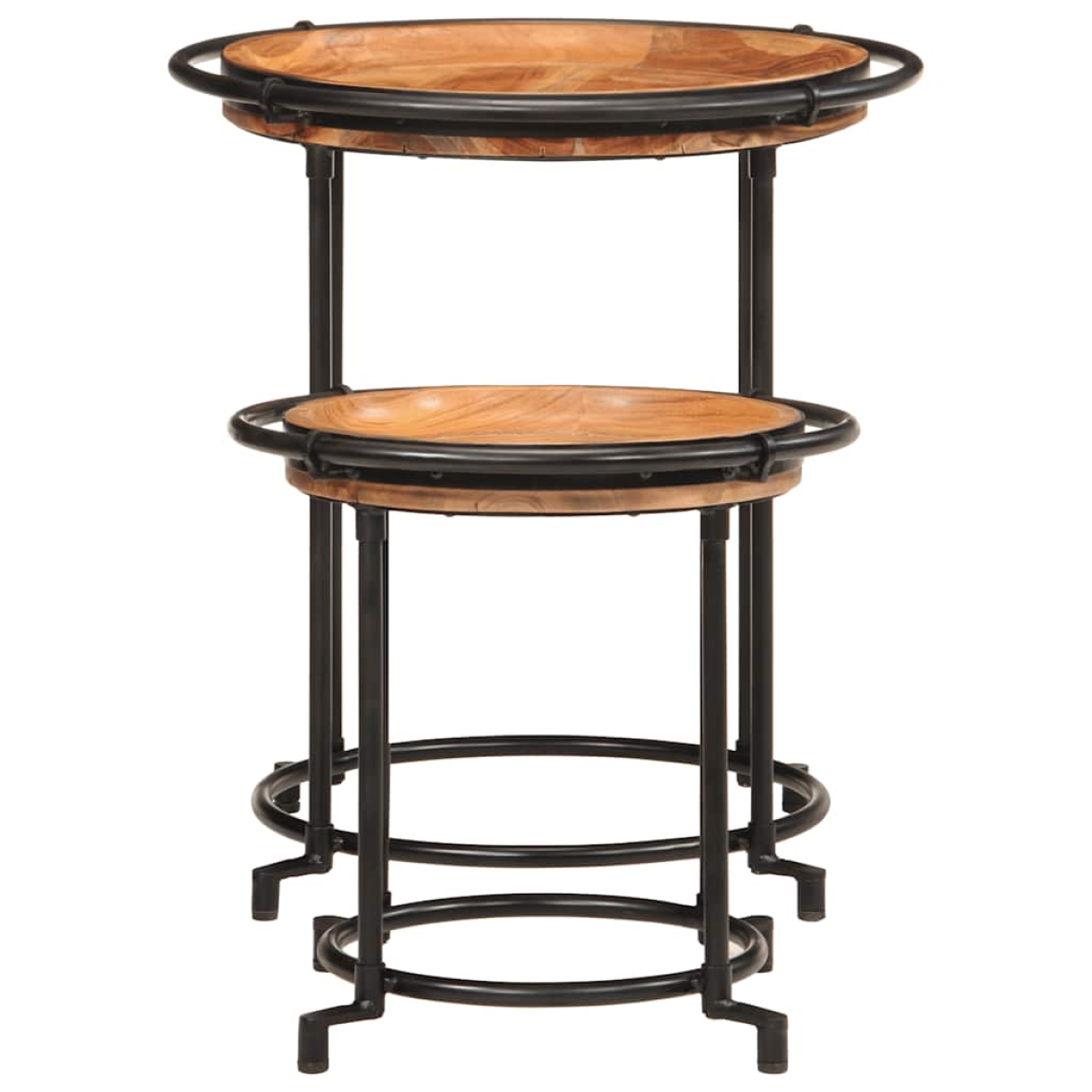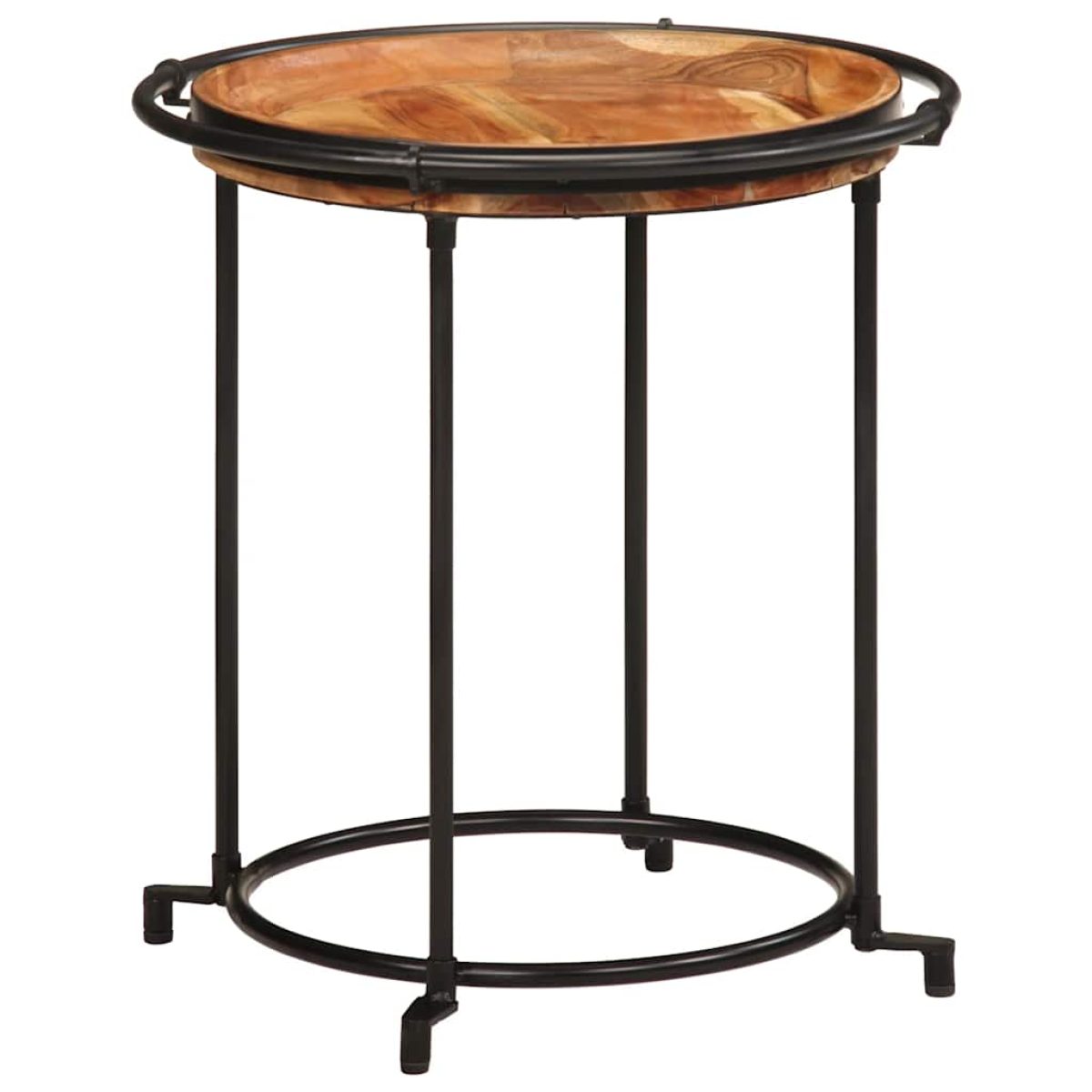 This side table set is designed to be the focal point of your room with a trendy yet practical design. Robust and stable material: Solid acacia wood is known for its strength and durability. Its diverse colours and unique grain patterns give it an attractive appearance. With good stability and resistance to weathering, it is ideal for crafting indoor and outdoor furniture.Stable and long-lasting frame: The iron frame of the table enhances your interior with an industrial style and provides exceptional durability and stability.Sturdy tabletop: The sturdy tabletop of the hallway table is perfect for placing your framed photos, potted plants, and other decorative items.Easy to maintain: Thanks to its smooth surface, the side table is easy to clean with a cloth and requires less maintenance.Wide applications: This side table has a timeless design and can be used in the living room, kitchen, or bedroom according to your needs.