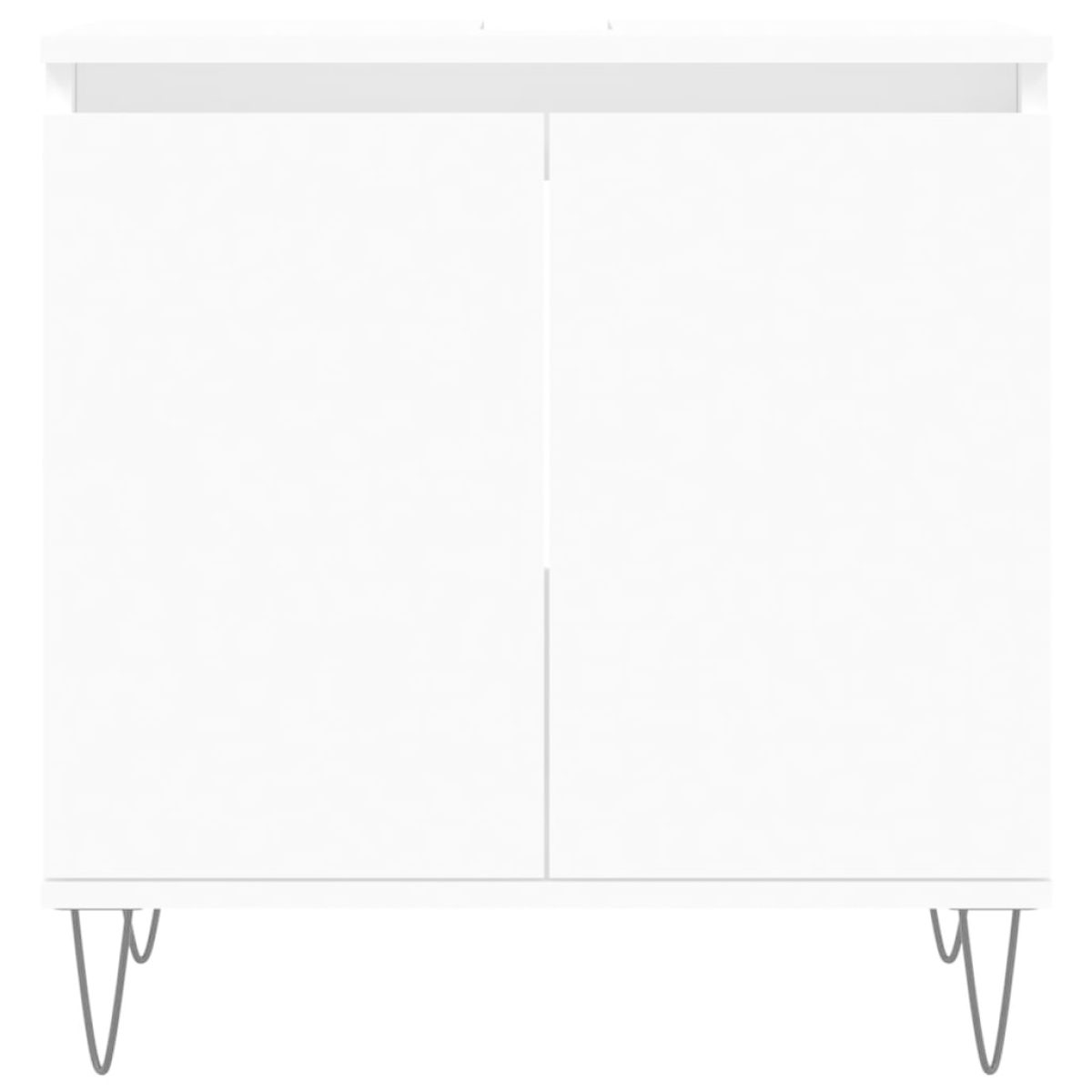 This attractive bathroom cabinet set, with ample storage space, features a stylish yet practical design. Durable material: The engineered wood is of exceptional quality with a smooth surface and features strength, stability and resistance to moisture. Ample storage space: The storage space makes this bathroom furniture set easy to keep things organised. Metal feet: The metal feet add a modern and calm style to your interior while ensuring stability.Easy-to-clean surface: The bathroom unit is easy to clean with a damp cloth. Warning:To prevent it being overturned, this product must be used with the provided wall attachment device. Good to know:Screws and plugs for inside the wall are not included. We advise to find and use screws and plugs suitable specifically for your walls. If you're not sure, you can consult with a professional. Please read and follow each step of the instructions.The sink is not included in the delivery.