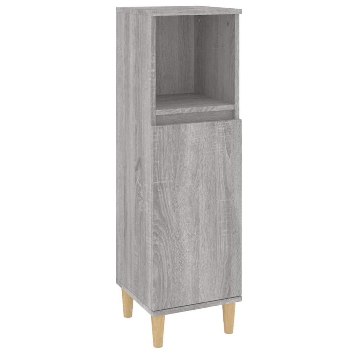 This stylish bathroom furniture set, featuring spacious storage space, is an excellent addition to your bathroom, giving it a tidy and striking appearance! Durable material: The engineered wood is of exceptional quality with a smooth surface and features strength, stability and resistance to moisture.Ample storage space: These bathroom cabinets offer ample storage space for keeping your bathroom supplies well organised.Wooden feet: The solid eucalyptus wood feet give the bathroom furniture a natural and pleasant look while ensuring stability.Easy-to-clean surface: The bathroom unit is easy to clean with a damp cloth.Stylish design: The clean lines and sleek design blend into your bathroom perfectly. Warning:To prevent it being overturned, this product must be used with the provided wall attachment device. Good to know:Screws and plugs for inside the wall are not included. We advise to find and use screws and plugs suitable specifically for your walls. If you're not sure, you can consult with a professional. Please read and follow each step of the instructions.