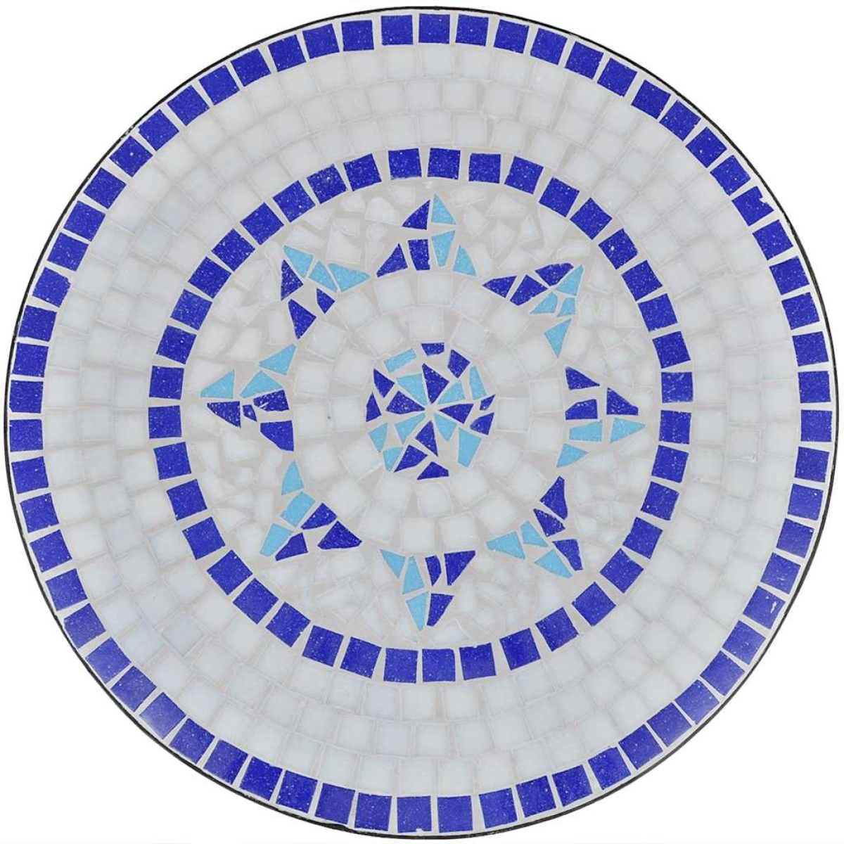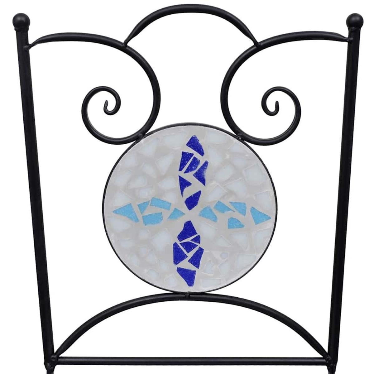 Add a romantic touch to your garden, patio, or balcony with this mosaic bistro set. It will be a great pleasure to chat with your friends or have a cuppa while relaxing on this decorative yet functional garden furniture set. Thanks to its strong powder-coated iron frame, this set is sturdy and durable. Due to the water-proof ceramic tile table top and seats, this set is easy to clean. Delivery includes 1 table and 2 chairs.