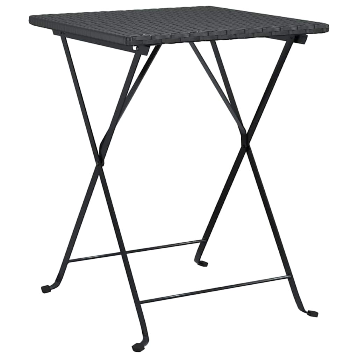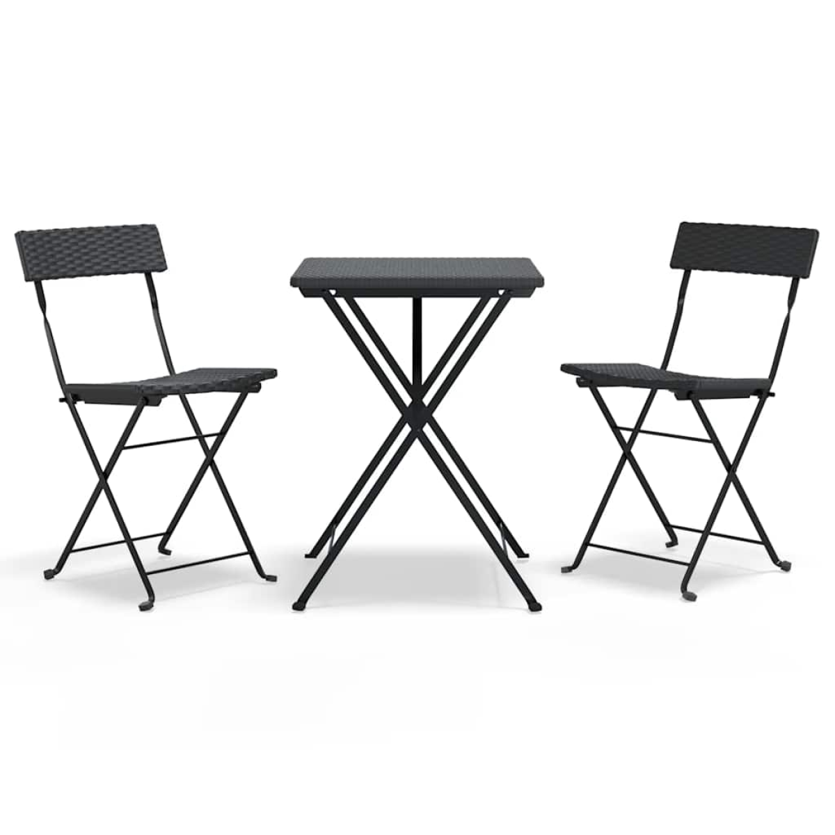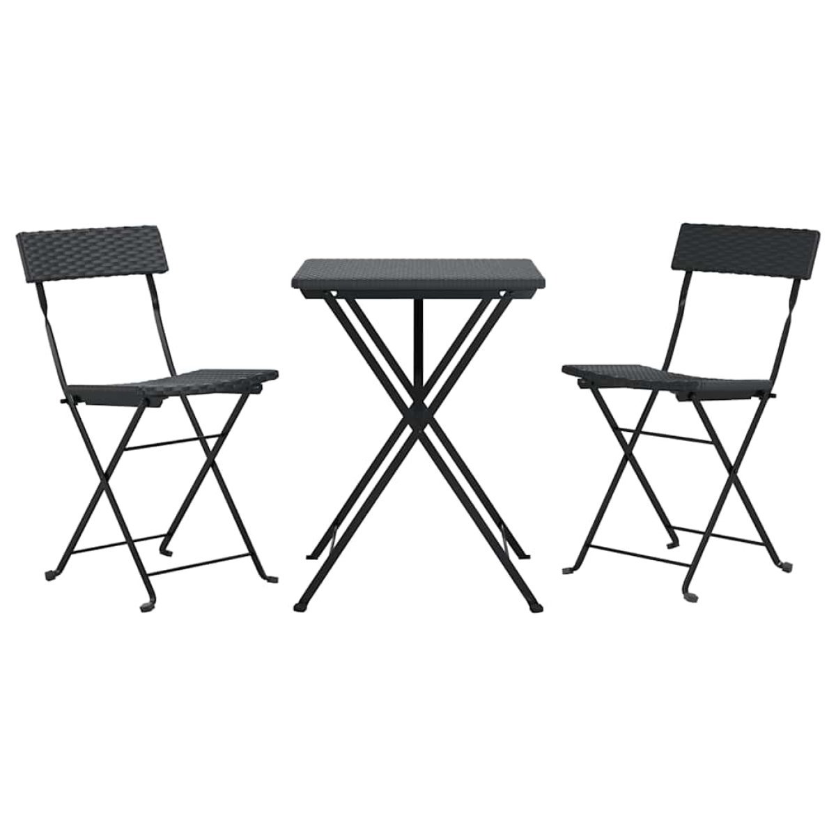 This 3 piece folding bistro set made of poly rattan is an excellent choice for dining or relaxing in your garden, balcony or patio. Durable material: PE rattan, also known as poly rattan, is weather resistant and easy to clean. It remains beautiful on the outside for a long period of time. It's more economical than other materials, while offering great quality, convenience and an aesthetic look.Stable frame: The powder-coated steel frame ensures sturdiness and stability.Foldable design: The table and chairs can be easily folded away when not in use, for easy storage and transportation. Note:In order to extend the life of your outdoor furniture, we recommend you to protect it with a waterproof cover.Each product comes with an assembly manual in the box for easy assembly.