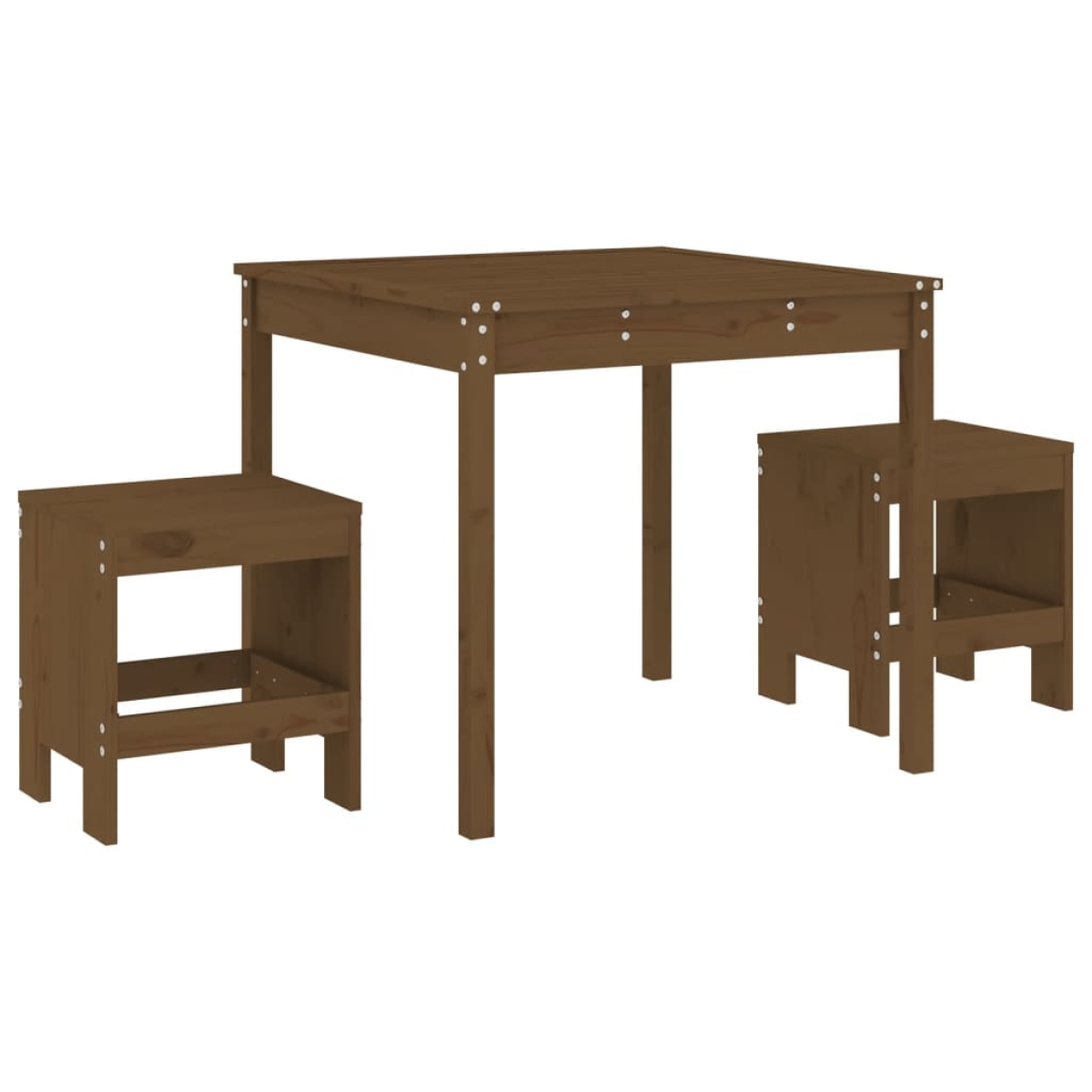 This wooden garden bistro set provides you with a leisurely and comfortable time with your family and friends. Solid pine wood: This bistro set is made of solid pine wood. Solid pine wood is a beautiful natural material. Pine wood has a straight grain, and the knots give the material its signature, rustic look.Sturdy top: The garden table of the outdoor bistro set has a sturdy top, which is perfect for placing your drinks, food and other decorative items.Practical design: These wooden bar stools have no backrest, so you can sit comfortably on either side of the stools and store them under the countertop when not in use.Wide applications: With its minimalist design, the patio bistro set can be integrated into any corner of the garden, patio, balcony, backyard, etc. Good to know:To make sure your outdoor furniture stays beautiful, we recommend protecting it with a waterproof cover.