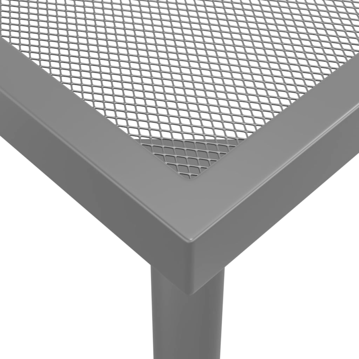 This trendy garden dining set, featuring an elegant and contemporary design, is a perfect choice for relaxing in your garden. Sturdy material: Steel is an exceptionally hard and strong material. It offers sturdiness and stability. The powder coating and e-coating on steel create a protective layer against wear and corrosion.Stable frame: The powder-coated and e-coated steel frame ensures the dining set's sturdiness and stability.Stackable function: The dining chairs are stackable to save space when not in use.Practical table: The sturdy tabletop of the dining table is perfect for placing meals, drinks, and other decorative items.Elegant legs: The curved legs of the garden dining table create an air of elegance while ensuring stability.Mesh design: The outdoor dining set with a mesh design looks simple and timeless and is suitable for balconies, porches, gardens, patios, etc. Note:To make sure your outdoor furniture stays beautiful, we recommend protecting it with a waterproof cover.