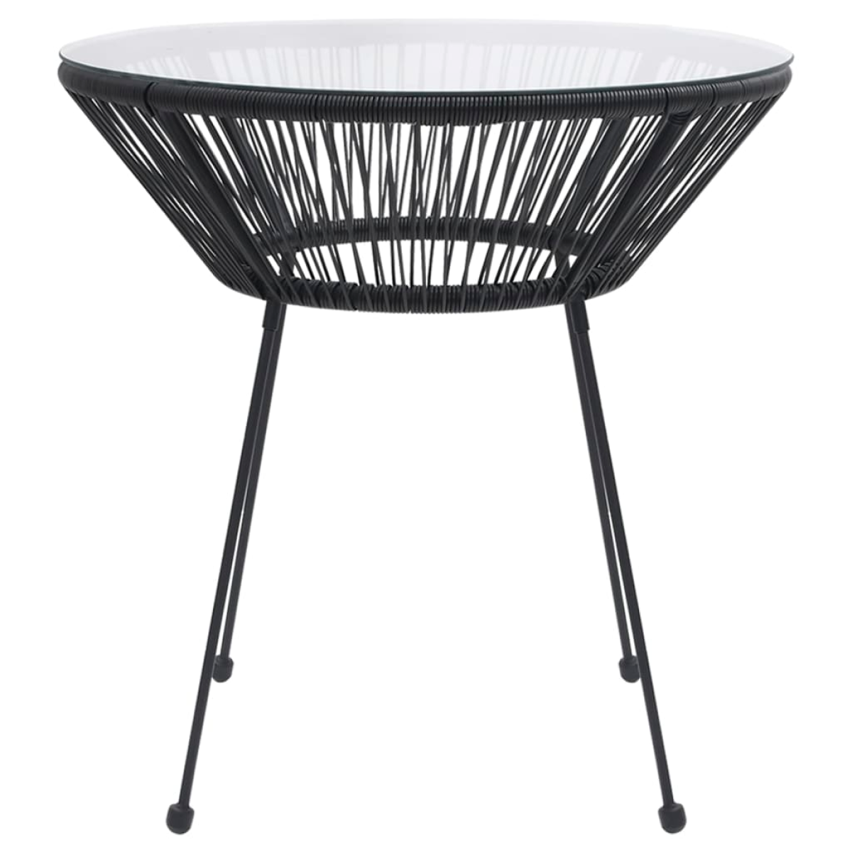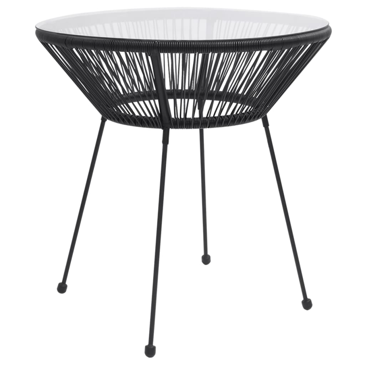 - Material: Round PVC rattan, tempered glass, powder-coated steel