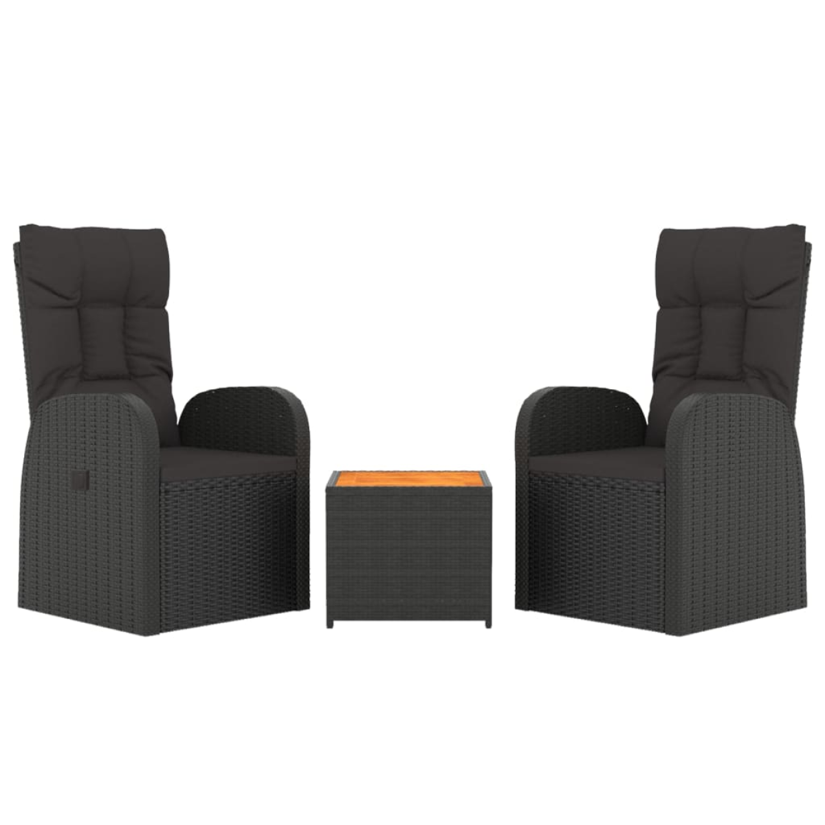 vidaXL 3 Piece Garden Lounge Set Black Poly Rattan&Solid Wood Acacia