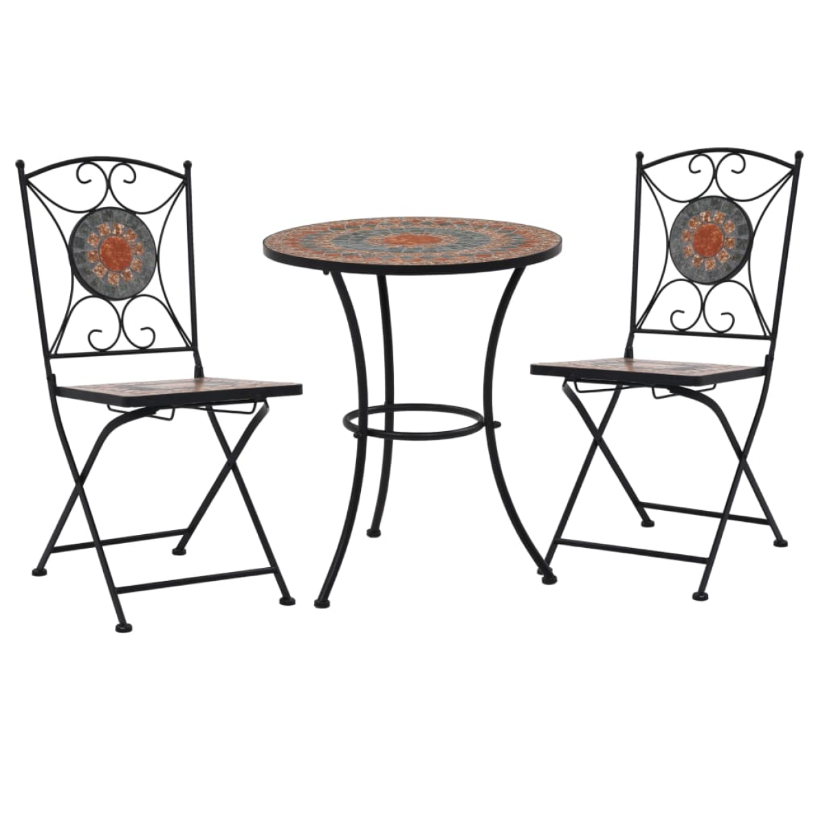 vidaXL 3 Piece Mosaic Bistro Set Ceramic Tile Orange/Grey
