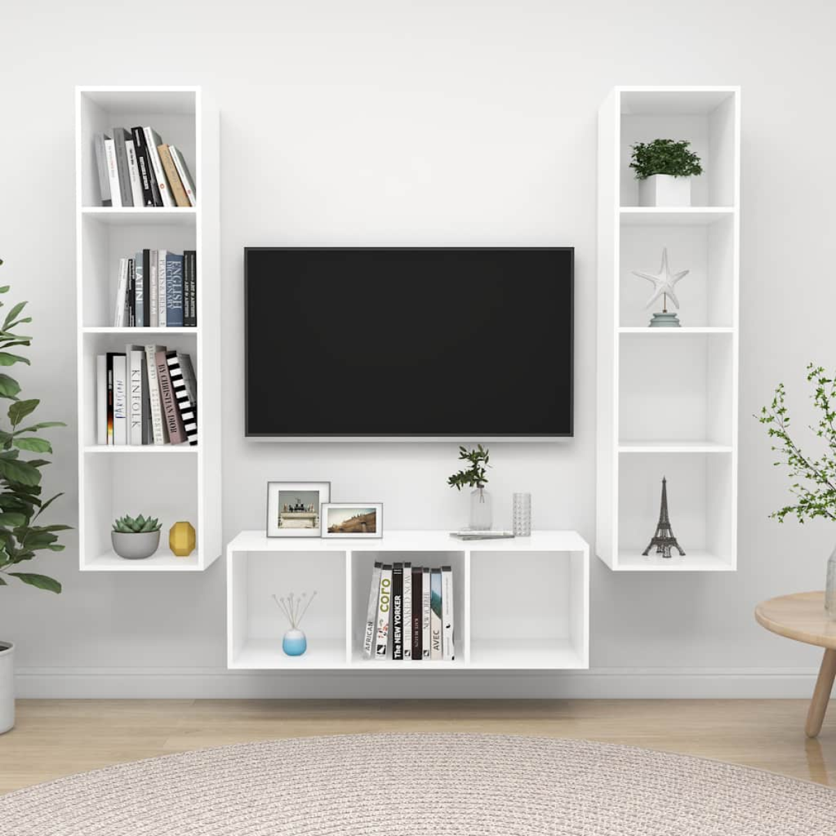 vidaXL 3 Piece TV Cabinet Set White Engineered Wood