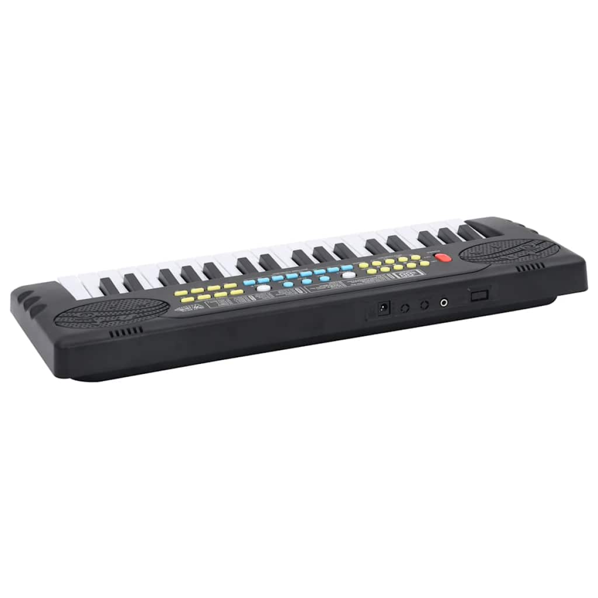 This piano electric keyboard is an ideal choice for children, helping to create a musical environment that promotes the development of their intelligence and emotional growth. Multifunctional: The keyboard offers 5 demo songs, 8 rhythms, 8 tones, and 4 percussion options, giving children the freedom to explore various musical styles and genres. Additionally, it includes an LED display and audio input/output for an enhanced user experience.With microphone and music stand: The keyboard comes with a mini microphone, letting children sing along as they play, which helps build their performance skills and self-confidence. It also includes a music stand to conveniently hold their sheet music.Battery and USB Power Options: The keyboard supports both USB power and battery operation, offering flexibility for use at home or during outdoor performances.Compact and portable design: With 37 keys, this lightweight keyboard is easy to carry, making it perfect for beginners, kids, or musicians on the go.Perfect gift for children: This electric keyboard makes an ideal gift for kids on birthdays, during visits, or for holidays like Christmas, Thanksgiving, Children's Day, New Year’s Day, or other special occasions.