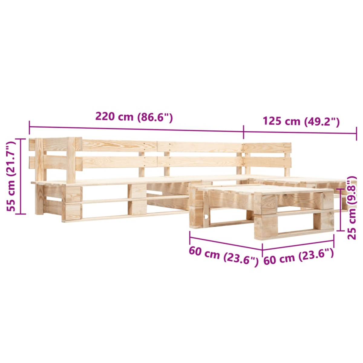 • Lounge set dimensions: 220 x 125 x 55 cm (W x D x H)