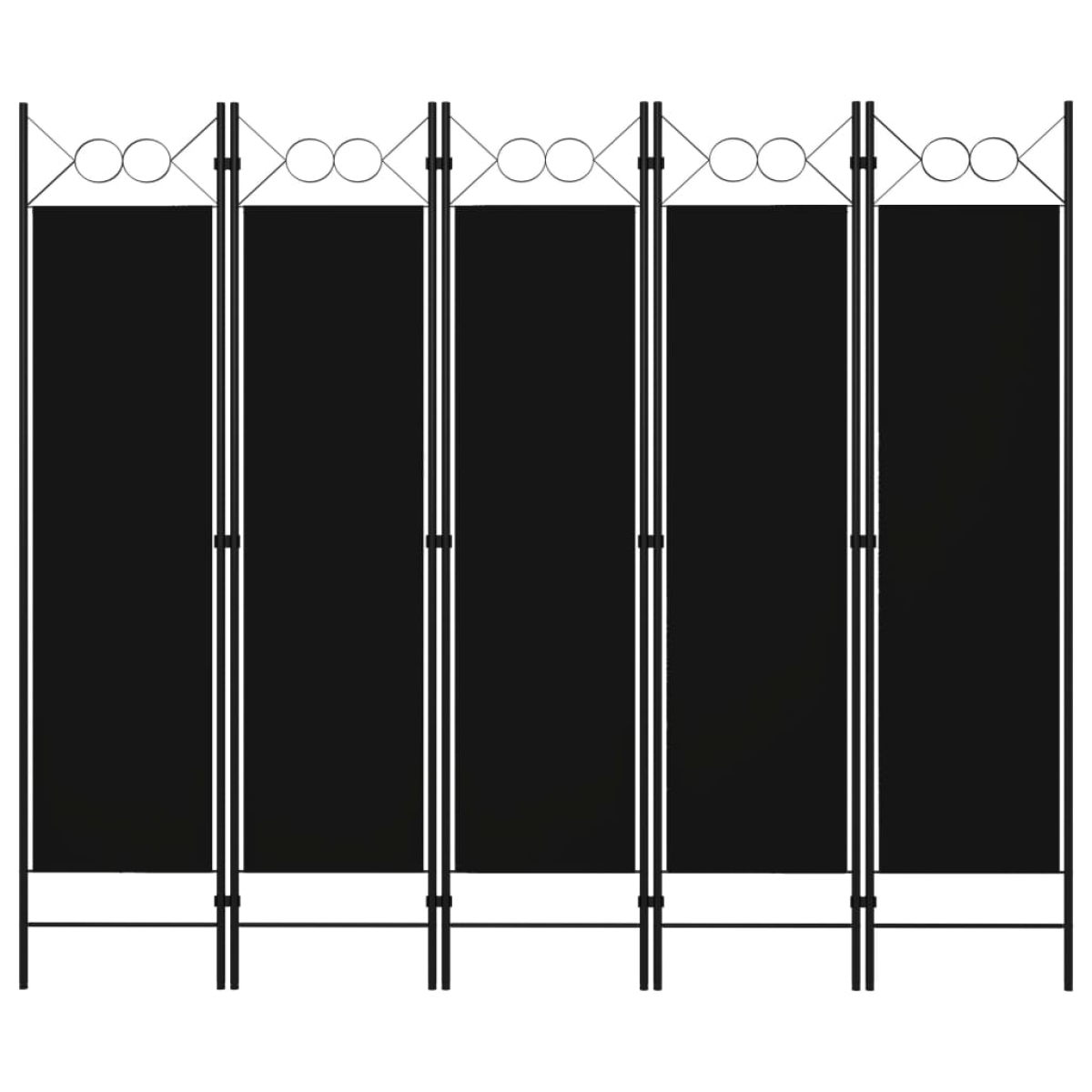 vidaXL 5-Panel Room Divider Black 200x180 cm