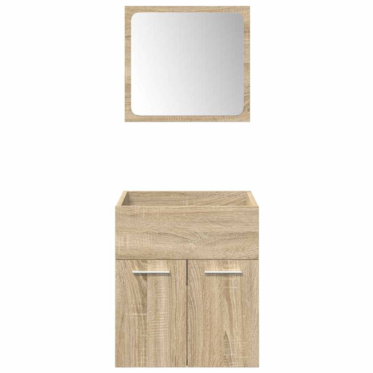 This handy bathroom furniture set, featuring spacious storage space, is an excellent addition to your bathroom, giving it a tidy and striking appearance! Long-lasting material: The engineered wood is of exceptional quality with a smooth surface and also features strength, stability and resistance to moisture.Durable material: The bathroom sink, made of ceramic, has a durable surface that resists impacts, stains, and scratches, ensuring its long-lasting shine.Ample storage space: The bathroom cabinet offers ample storage space to easily accommodate your essential toiletries and bath items such as soaps, shampoo, toothpaste, etc.Wall-mounted function: The bathroom furniture can be wall-mounted to add extra storage space. That way, you can maximise your floor space and keep the area clean.Clear image: The glass mirror face provides a fine and non-distorted reflection, so it is suitable for making up, shaving or checking the suit before going out. Good to know:Screws and plugs for inside the wall are not included. We advise you to find and use screws and plugs suitable specifically for your walls. If you're not sure, you can consult with a professional. Please read and follow each step of the instructions.