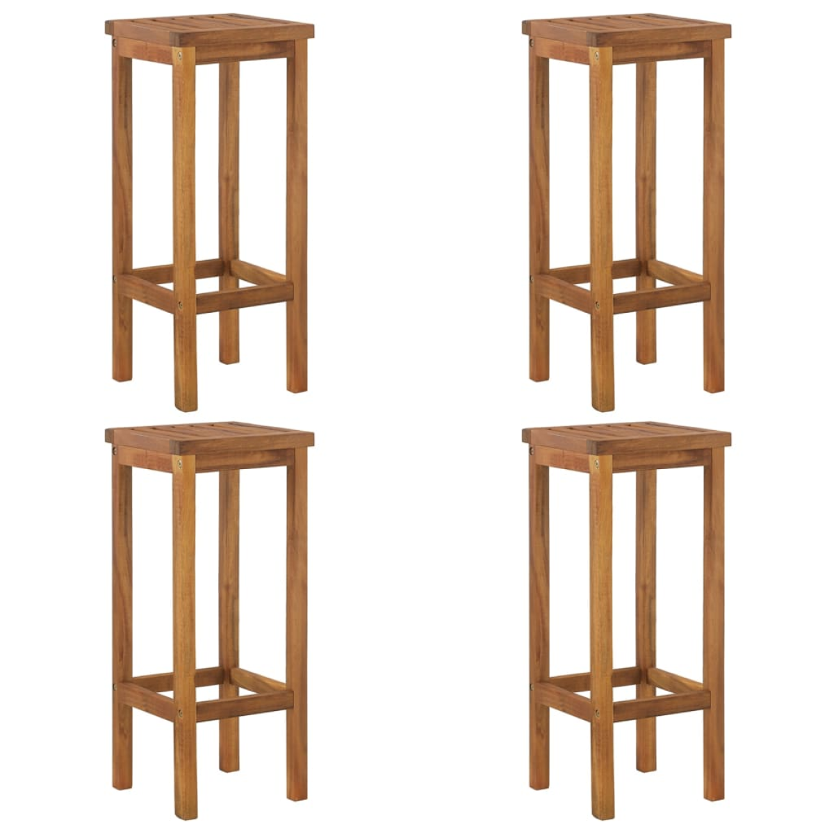 This wooden garden bar set has an elegant design and is meant to be the focal point of your garden, patio, or terrace. Solid acacia wood: Solid acacia wood is a beautiful natural material. Acacia wood is a tropical hardwood, which is dense, sturdy, and durable. Additionally, the oil-finished surface makes it easy to clean the garden table and chairs.Sturdy wooden frame: The wooden frames of the outdoor dining set ensure sturdiness and stability.Practical shelves: The bistro table has 2 shelves for keeping food and drinks within easy reach.Comfortable bar stools: The footrests of these wooden bar stools provide extra seating comfort.Timeless look: The sleek design of the wooden bistro table and stools make them a timeless investment for your home. Note:In order to extend the life of your outdoor furniture, we recommend you to clean it regularly and do not leave it outdoors without protection unnecessarily.Clean: Use a mild soap solution.Storing: If possible, store in a cool, dry place indoors. If the product is stored outdoors, protect it with a waterproof cover. Wipe and dry the excess water or snow from flat surfaces after a rain or snowfall. Allow sufficient air circulation to avoid moisture-related damage.