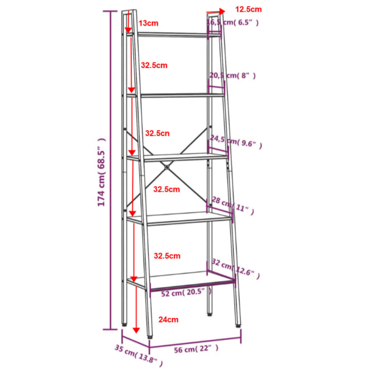 • Dimensions: 56 x 35 x 174 cm (W x D x H)