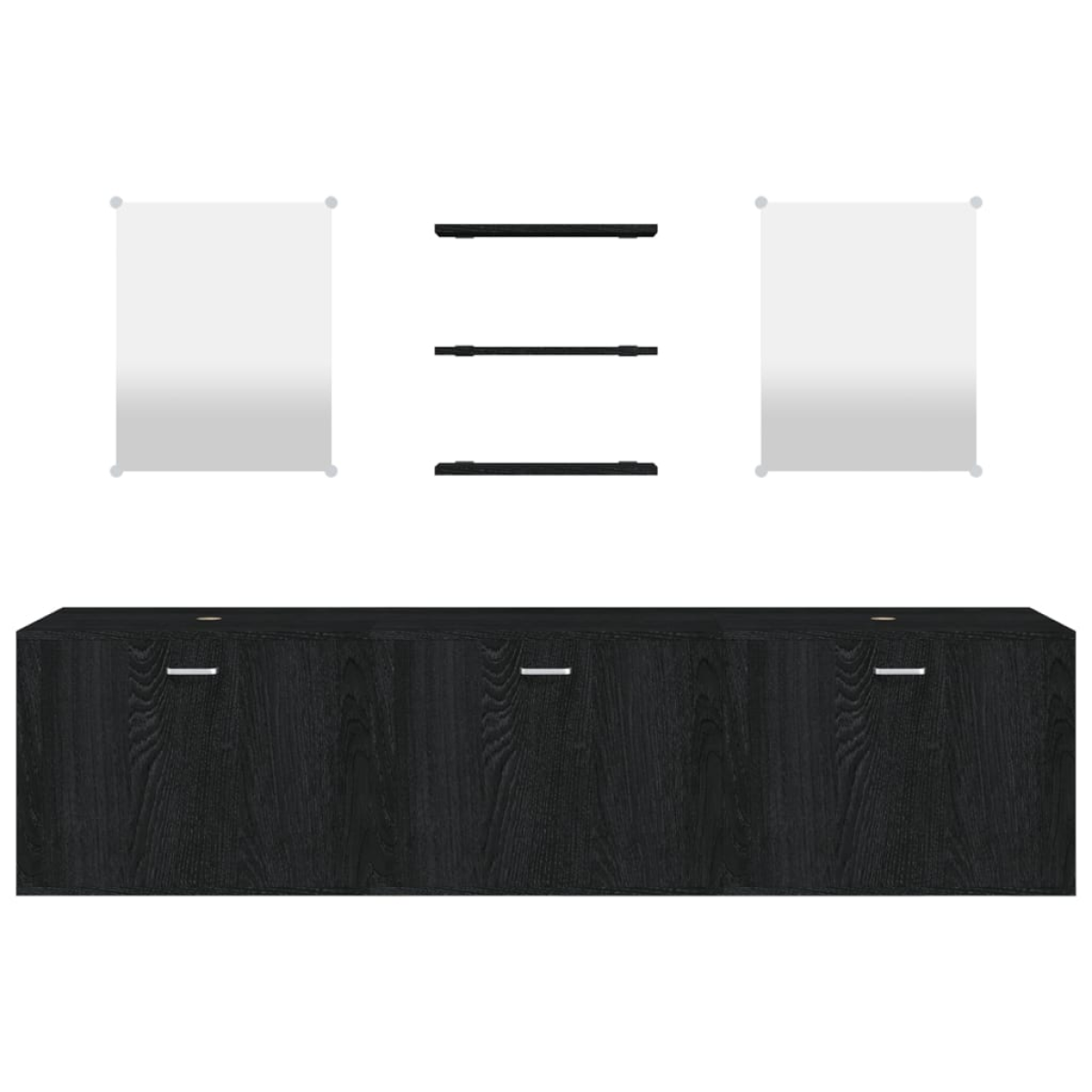This trendy bathroom furniture set is meant to be an excellent addition to your bathroom, giving it a tidy and striking appearance! Durable material: The engineered wood is of exceptional quality with smooth surface and also features strength, stability and resistance to moisture. Extra storage: The bathroom cabinet offers extra storage space to store the essentials in your bathroom. The top of the cabinet is ideal for placing the wash basin. Wall-mounted function: The cabinet doesn't take any floor space. You can hang it on the wall easily. Practical mirror: Use the included mirror to neat your daily dressing. It also adds an excellent appearance to your home decor. Good to know:The wash basin is not included in the delivery. The drain is included in the delivery.Screws and plugs for inside the wall are not included. We advise to find and use screws and plugs suitable specifically for your walls. If you're not sure, you can consult with a professional. Please read and follow each step of the instructions.