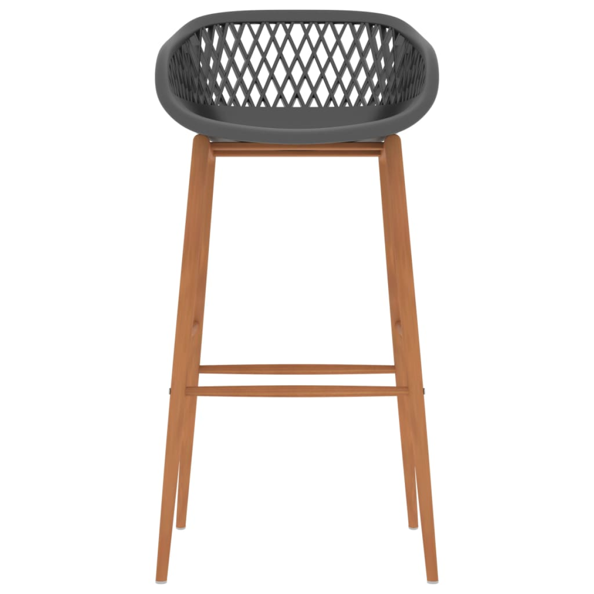 Featuring a modern and contemporary design, our bar set is perfect to go with any modern homes, gardens, bars, pubs or restaurants. Its clean and contemporary design will complement any interior decor. The tabletop is made of MDF which is easy to clean. The powder-coated metal frame adds to bar table's stability and sturdiness. The bar stools have an ergonomically designed seat with integrated low backrest in a mesh look. Made of robust PP and supported by strong metal legs with heat transfer print in wood look, these counter chairs are sturdy and durable.