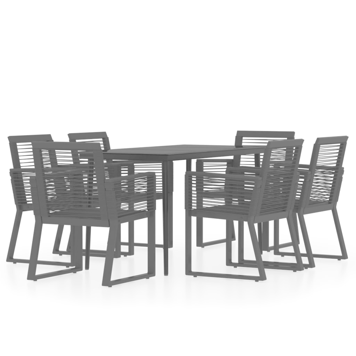 Create a compelling and cohesive aesthetic in your outdoor space with this garden dining set! This dinner table is made of a powder-coated steel frame, sturdy and stable for daily outdoor use. The smooth glass tabletop is easy to clean with a damp cloth and perfect for placing meals, drinks and other decorative items. The garden chairs are made of PVC rattan, woven over a fine lacquered steel frame, making them stable and resistant to poor weather and UV rays. Note: In order to extend the life of your outdoor furniture, we recommend you to clean it regularly and do not leave it outdoors without protection unnecessarily. Clean: Use a mild soap solution. Storing: If possible, store in a cool, dry place indoors. If the product is stored outdoors, protect it with a waterproof cover. Wipe and dry the excess water or snow from flat surfaces after a rain or snowfall. Allow sufficient air circulation to avoid moisture-related damage.