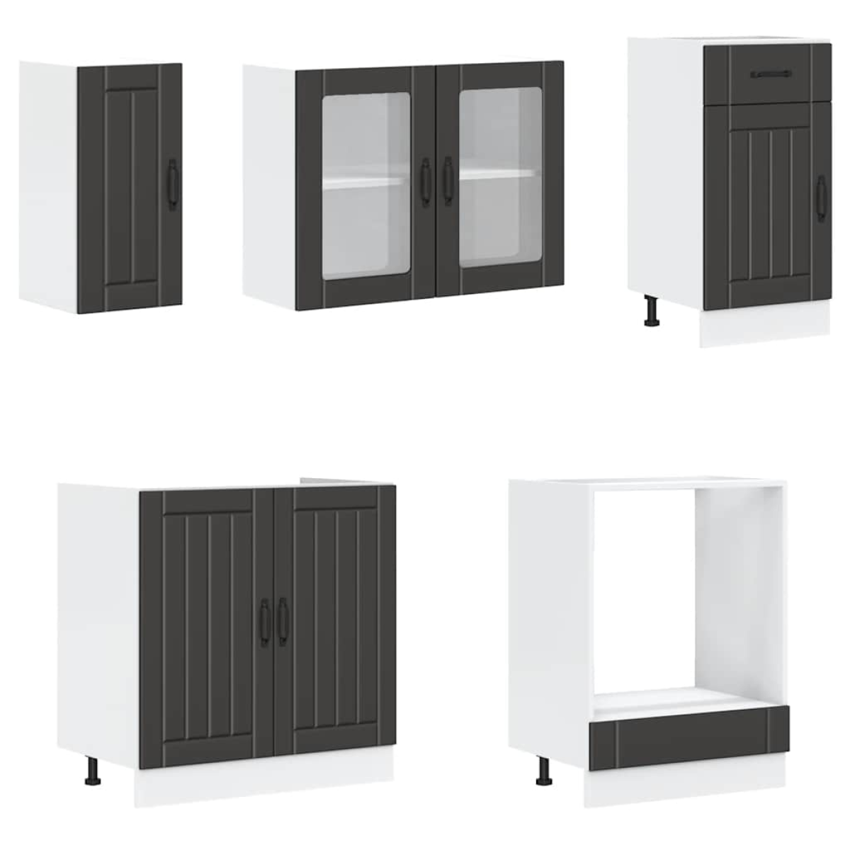 vidaXL 8 Piece Kitchen Cabinet Set Kalmar Black Engineered Wood