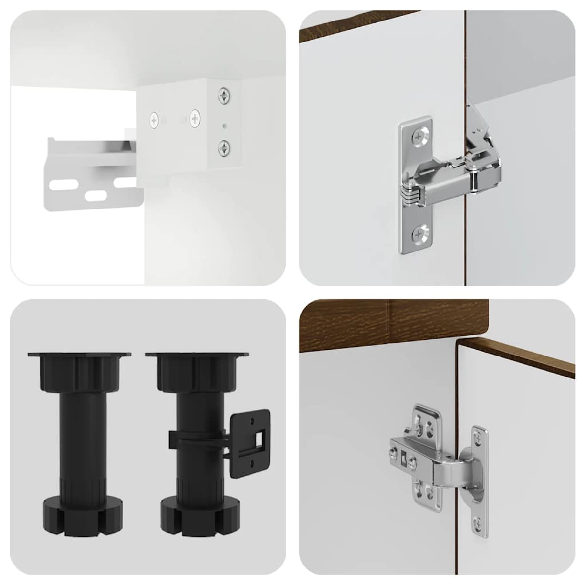 This 8-piece kitchen cabinet set, with its elegant design, optimises your kitchen space and provides ample storage space for your personal belongings! Stable and durable material: Engineered wood is a durable and stable material with a smooth surface that is resistant to moisture, warping, and splitting, making it a reliable choice for a variety of projects.Ample storage space: The kitchen cabinet set has many compartments, and offers sufficient space to store bowls, plates, pots, and other kitchen appliances.Adjustable feet: The bottom cabinets feature adjustable feet that can be adjusted in height to suit your kitchen layout.Easy to maintain: Thanks to its smooth surface, these kitchen cabinets are easy to clean with a damp cloth and require less maintenance. Warning:This product must be secured by installing a worktop. Good to know:Screw(s) and plug(s) for inside the wall are not included. Seek and use screw(s) and plug(s) suitable for your walls. If you are uncertain, seek professional advice. Read and follow each step of the instruction carefully.The worktop, sink and faucet are not included in the delivery.