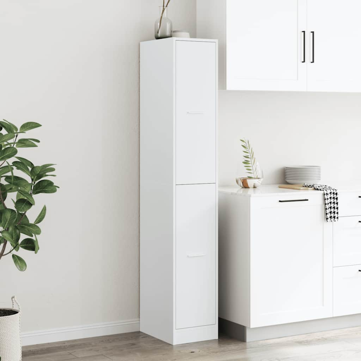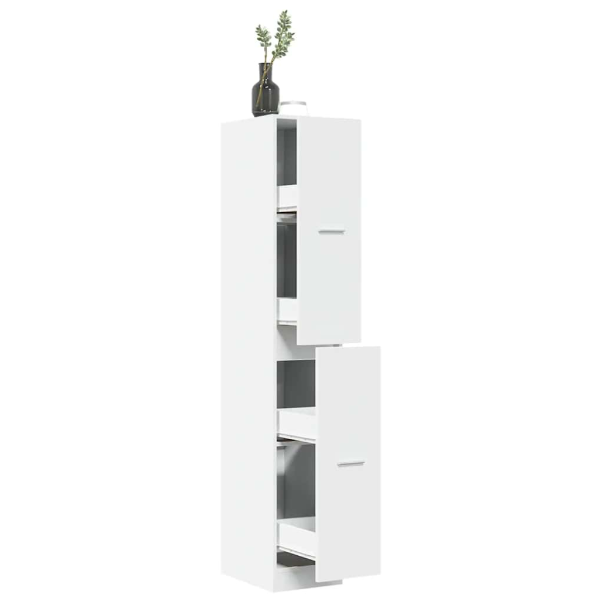 This classic apothecary cabinet is meant to be a decorative and practical addition to your home and office. Stable and durable material: Engineered wood is a durable and stable material with a smooth surface that is resistant to moisture, warping, and splitting, making it a reliable choice for a variety of projects.Ample storage space: The apothecary cabinet provides ample storage space to keep your daily essentials well organised and protect your things from dust and dirt.Easy to use: The apothecary cabinet features quality metal runners and elegant handles, so it can be moved smoothly for easy access to your stored items.Wide applications: This apothecary cabinet could be used as a pharmacy cabinet, storage cabinet, or drawer cabinet in the kitchen, living room, or office, depending on your needs. Warning:To prevent it from tipping over, this product must be used with the provided wall attachment device.Good to know:Screw(s) and plug(s) for inside the wall are not included. Seek and use screw(s) and plug(s) suitable for your walls. If you are uncertain, seek professional advice. Read and follow each step of the instruction carefully.